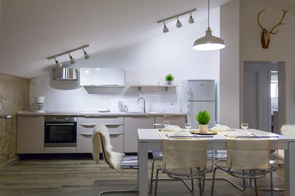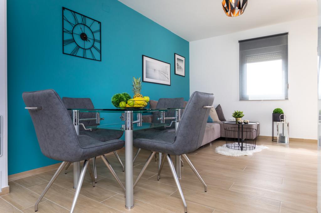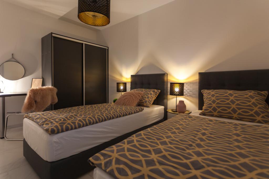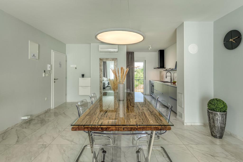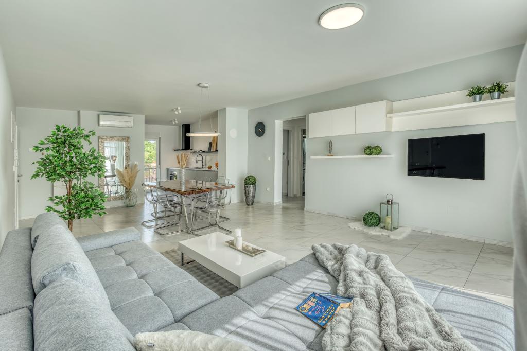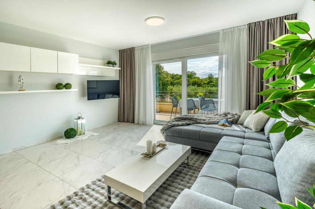 Die Villa FE bietet moderne und elegant eingerichtete Apartments mit herrlichem Meerblick in einem ruhigen und attraktiven Teil von Malinska-Rova, nur 300 Meter vom Strand entfernt. Die Villa besteht aus fünf modern ausgestatteten Apartments: eines im Untergeschoss, zwei im ersten und zwei im zweiten Stock. Die Apartments in den oberen Etagen verfügen über einen privaten Balkon, der zum Entspannen mit Blick auf die Adria einlädt. Die Inneneinrichtung ist modern und mit sorgfältig ausgewählten Möbeln gestaltet und garantiert einen komfortablen und angenehmen Aufenthalt. Zur Ausstattung gehören Klimaanlage in den Gemeinschaftsräumen und Schlafzimmern, ein Fernseher sowie kostenloses und schnelles WLAN im gesamten Gebäude. Dank ihrer hervorragenden Lage in der Nähe von Stränden, Restaurants und Einkaufsmöglichkeiten ist die Villa FE die perfekte Wahl für einen romantischen Urlaub, einen Familienurlaub oder eine erholsame Auszeit am Meer.
