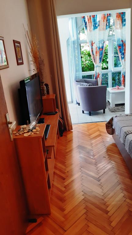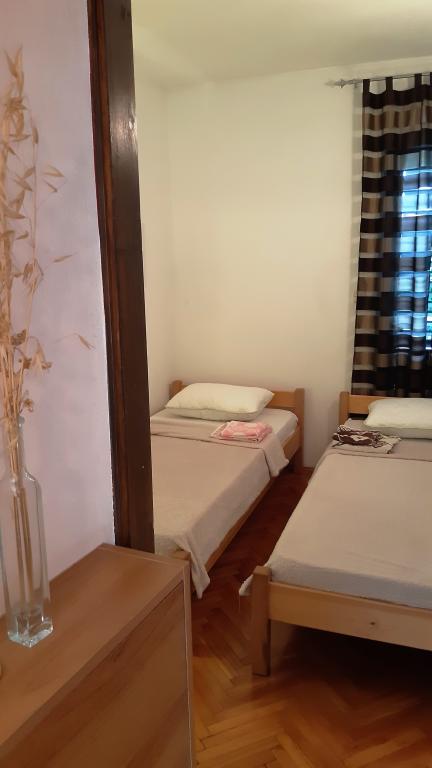 Die Apartments Valentin bestehen aus zwei Doppelzimmern, AP1 „GROSS“ (ID: 73494) und AP2 „KLEIN“ (ID: 13633), mit jeweils zwei Zustellbetten im Erdgeschoss des Familienhauses. Wir vermieten seit 2004 Apartments und haben bereits Hunderte von Gästen bei uns untergebracht – wir hoffen, sie waren zufrieden! Jedes Apartment verfügt über einen separaten Eingang, einen Parkplatz, Klimaanlage, Fernseher in jedem Zimmer und weitere Annehmlichkeiten für einen komfortablen Aufenthalt von zwei Familien mit je vier Personen. Das Haus liegt am Ende einer Sackgasse – hier herrscht absoluter Verkehrslärm. Im üppig begrünten Garten steht ein gemauerter Grill zur freien Verfügung. Der erste Strand mit Duschen ist ca. 400 m entfernt – etwa 8 Gehminuten. Wenn Sie gerne spazieren gehen, entdecken Sie zahlreiche Buchten und Strände. Ganz Malinska ist im Grunde ein einziger Strand mit Strandzugang. Sehen Sie sich das Video von einem Spaziergang durch den Garten und die Apartments an!