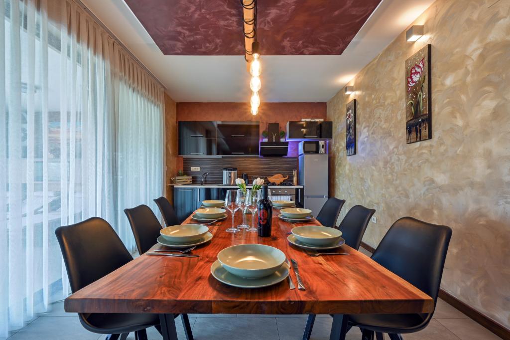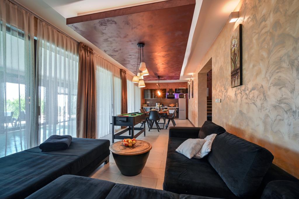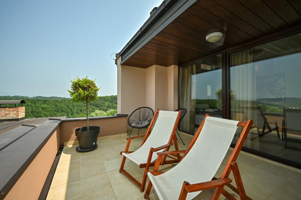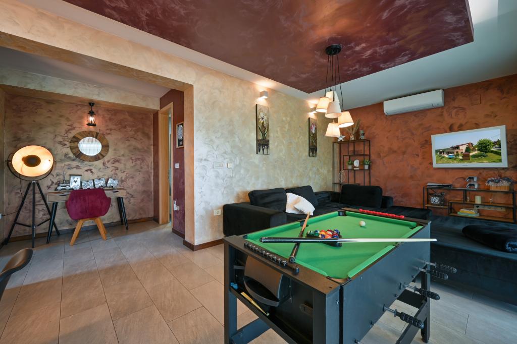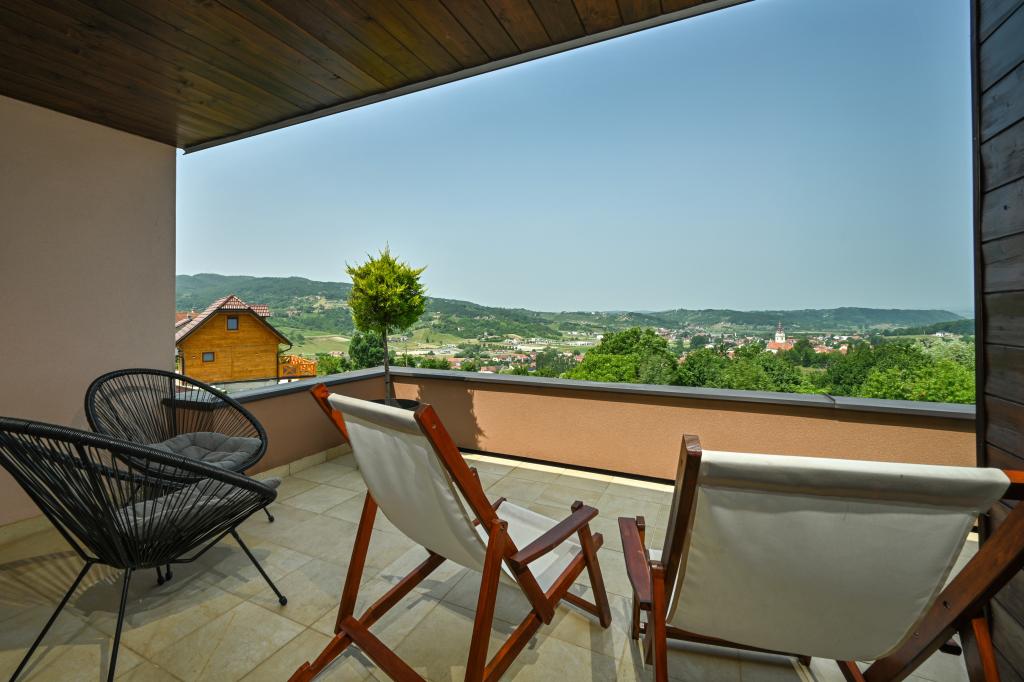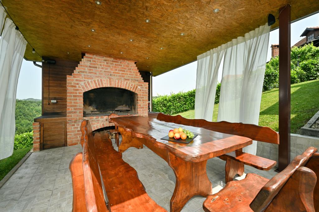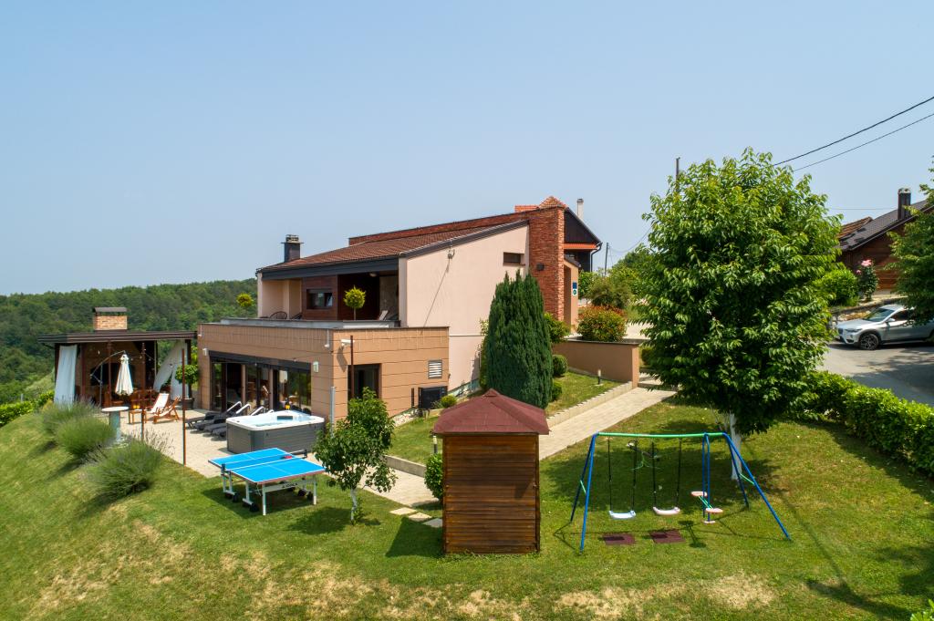 Im Herzen von Marija Bistrica, auf den Lichtungen der Zagorje-Hügel, mit einem einzigartigen Blick auf das berühmte Marienheiligtum und einem Anblick, der niemanden gleichgültig lässt, liegt das Ferienhaus Divinus. Das Haus verfügt über zwei Schlafzimmer mit Doppelbetten, ein Zimmer hat ein Zustellbett und im Wohnzimmer besteht die Möglichkeit, auf dem Ecksofa für drei weitere Personen zu schlafen. Das Anwesen verfügt über zwei Badezimmer, ein geräumiges Wohnzimmer mit Küche und Essbereich. Ein beheizter Innenpool, eine Sauna, ein Hydromassage-Whirlpool im Freien, ein überdachter Pavillon im Freien mit Grill und ein Kinderspielplatz stehen das ganze Jahr über zur Verfügung. Aufgrund seiner einzigartigen, ruhigen Lage eignet es sich für einen Familienurlaub oder einen romantischen Kurzurlaub zu zweit.