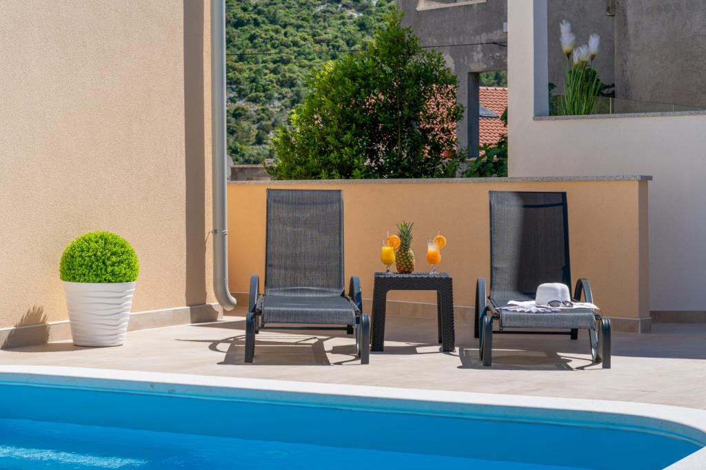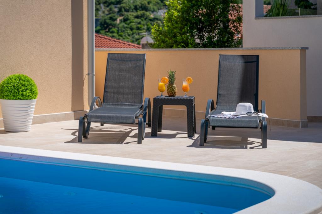 Wahrscheinlich eine der besten Unterkünfte in CRO. Alles ist sehr gepflegt, voll ausgestattet, modern und klimatisiert. Am Pool befindet sich eine Terrasse mit einem voll ausgestatteten Grill. Am Pool gibt es Sonnenliegen, eine Dusche und eine Toilette. Die Aussicht von der Villa ist fantastisch. Die Besitzerin, Marina, ist eine wundervolle und herzliche Person. Sie war sehr hilfsbereit und begrüßte uns sogar mit lokalem Fleisch, Käse und Brot. Der Strand (Kieselstrand) ist nur zwei Minuten entfernt. Sehr empfehlenswert! Wir kommen gerne wieder.