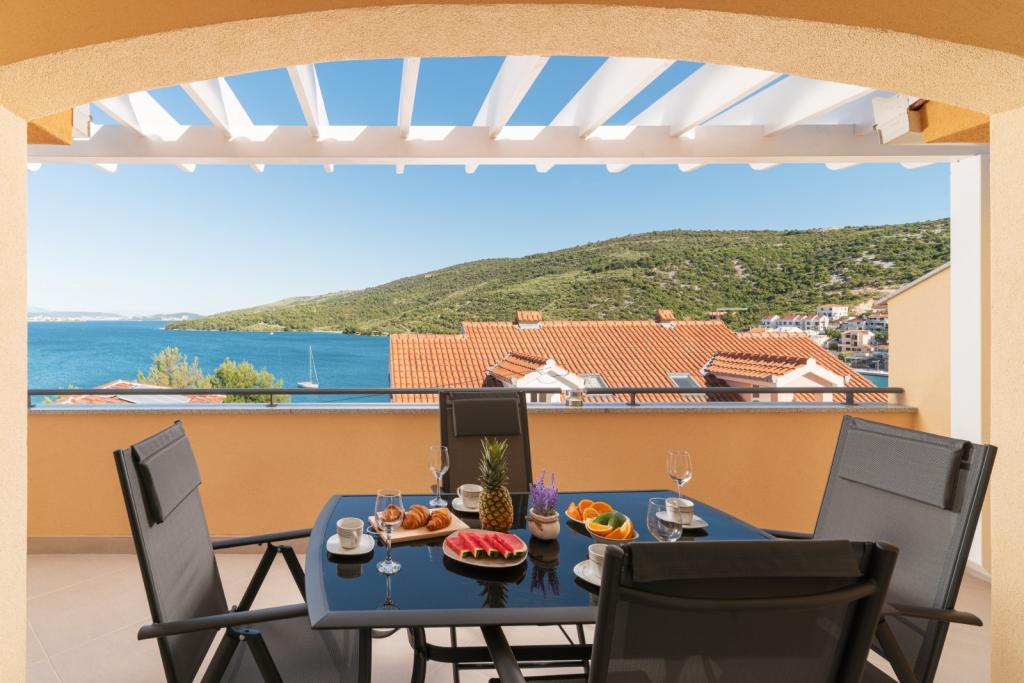 Villa A ist eine schöne Villa in einem ruhigen Ort Marina in der Nähe von Trogir.Sie besteht aus 6 Wohnungen, Schwimmbad, Außengrill, Privatparkplatz.Entfernung vom Strand beträgt 70m und zum Zentrum 500m.