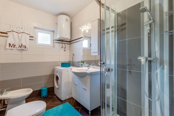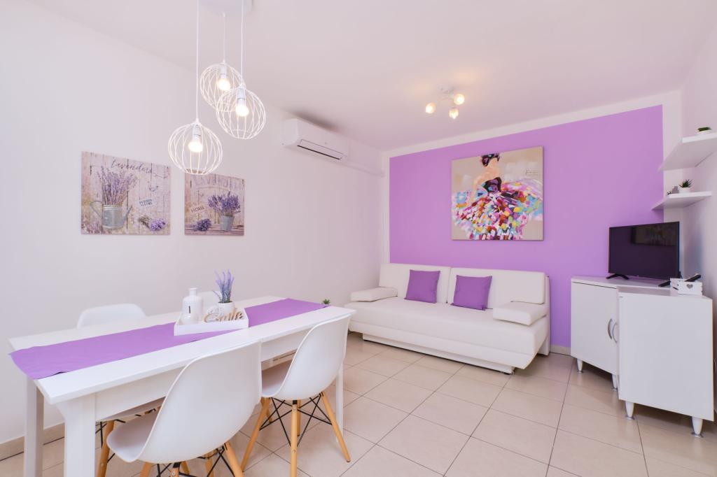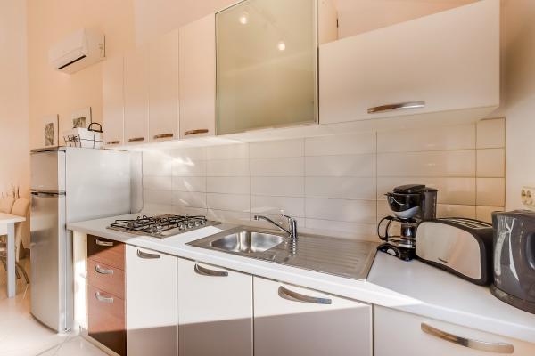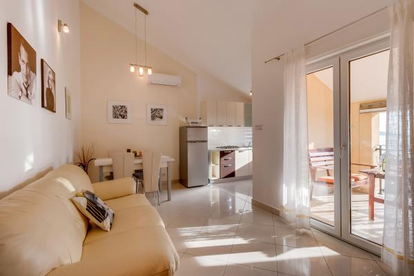 Alle drei Apartments sind modern ausgestattet, klimatisiert, verfügen über kostenloses WLAN, TV mit Satellitenschüssel, liegen ca. 80m vom Strand entfernt, haben eigene Terrassen und Parkplätze. Die Strände sind Kiesstrände und Sie werden immer das ideale Plätzchen für sich finden.