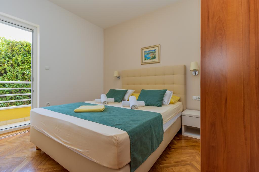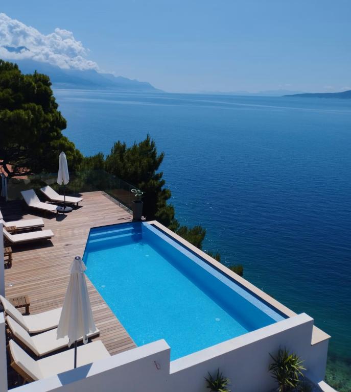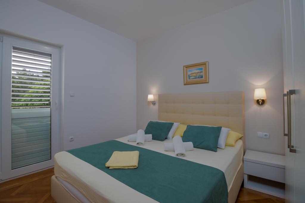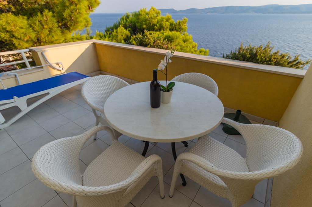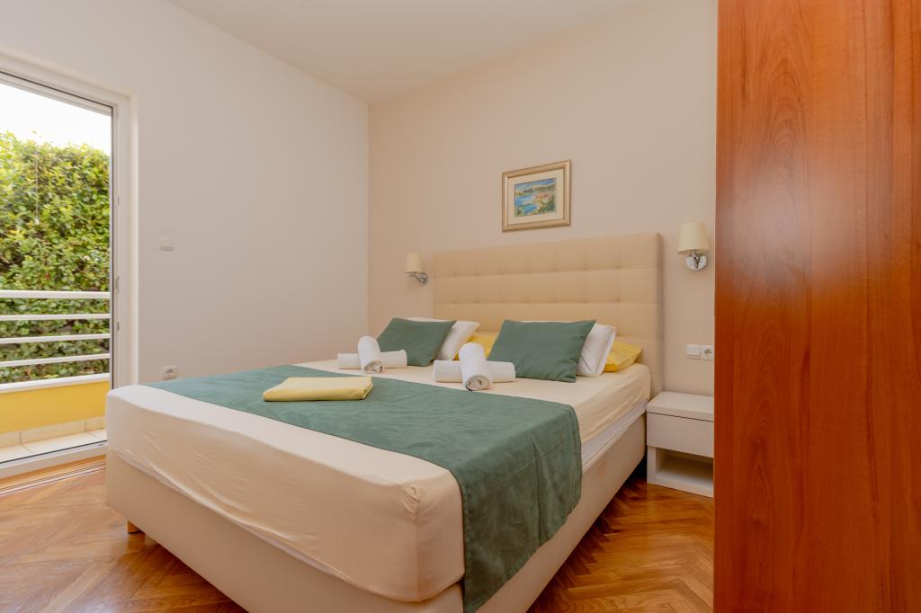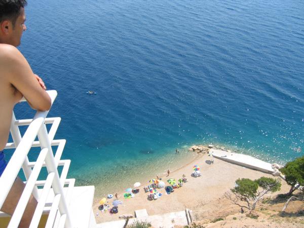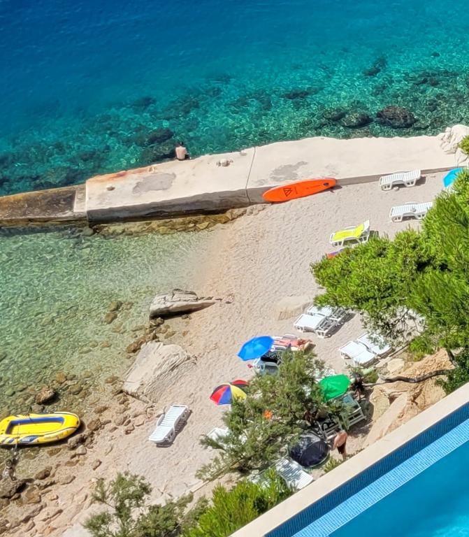 Die Villa Ruzmarina mit Infinity-Pool liegt direkt über dem Strand, der über eine private Treppe erreichbar ist und mit seinem Meerblick besticht. Jedes Apartment bietet einen wunderschönen Meerblick, auch jedes Zimmer bietet eine schöne Aussicht. Es gibt zwei Apartmenttypen: eines mit zwei Zimmern und einem Wohnzimmer und das andere mit einem Zimmer und einem Wohnzimmer. Jedes Apartment bietet Zugang zum Pool und Fitnessraum sowie kostenlose Parkplätze. Im Preis inbegriffen sind außerdem zwei Sonnenliegen und ein Sonnenschirm pro Apartment am Strand.