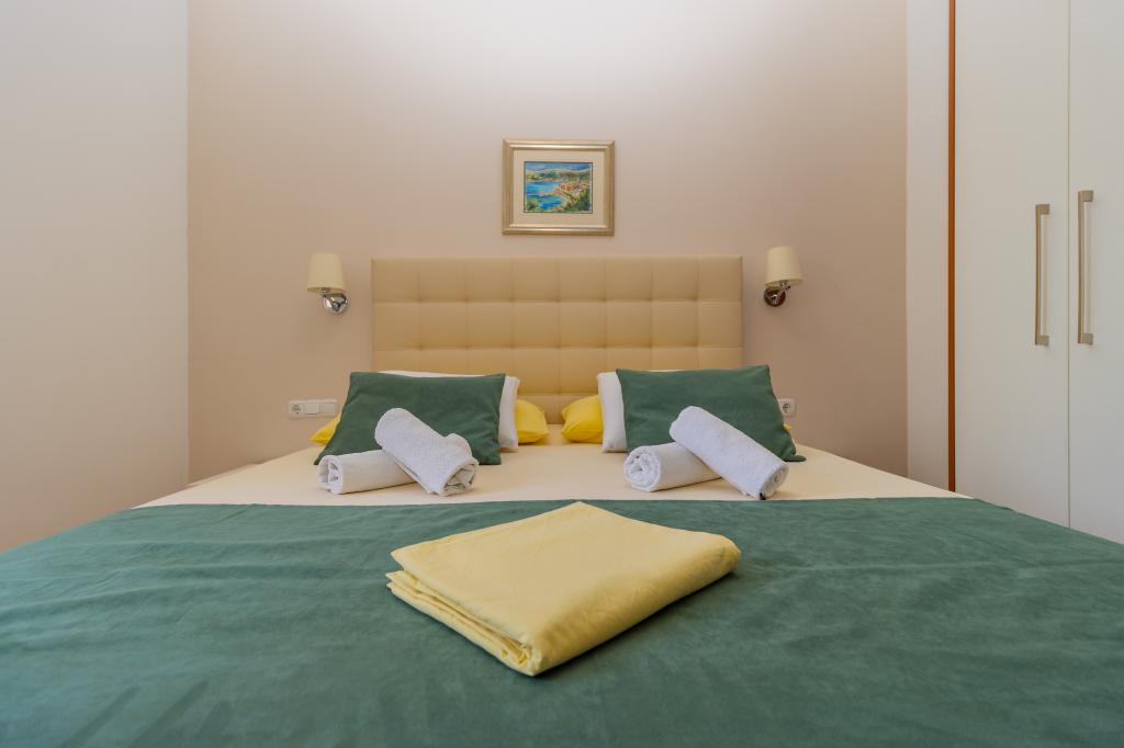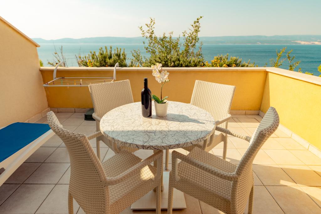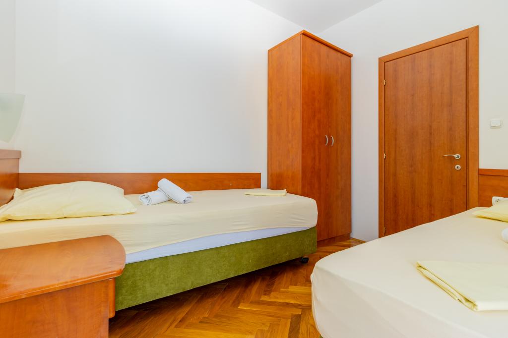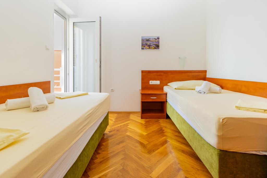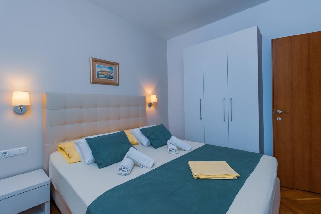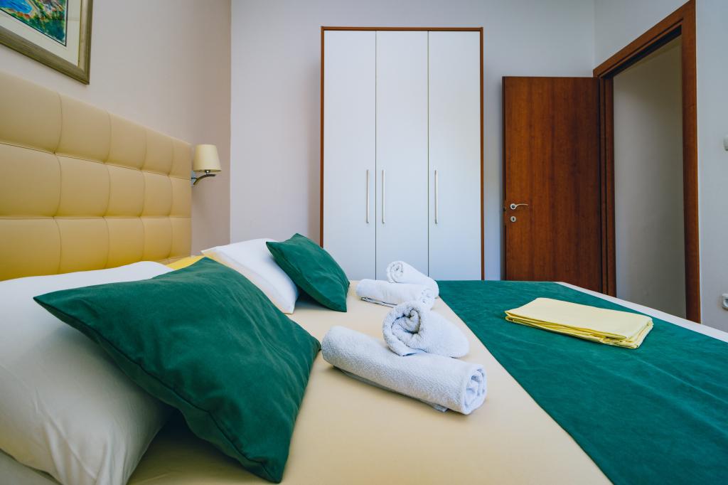 Die Villa Ruzmarina mit Infinity-Pool liegt direkt über dem Strand, der über eine private Treppe erreichbar ist und mit seinem Meerblick besticht. Jedes Apartment bietet einen wunderschönen Meerblick, auch jedes Zimmer bietet eine schöne Aussicht. Es gibt zwei Apartmenttypen: eines mit zwei Zimmern und einem Wohnzimmer und das andere mit einem Zimmer und einem Wohnzimmer. Jedes Apartment bietet Zugang zum Pool und Fitnessraum sowie kostenlose Parkplätze. Im Preis inbegriffen sind außerdem zwei Sonnenliegen und ein Sonnenschirm pro Apartment am Strand.