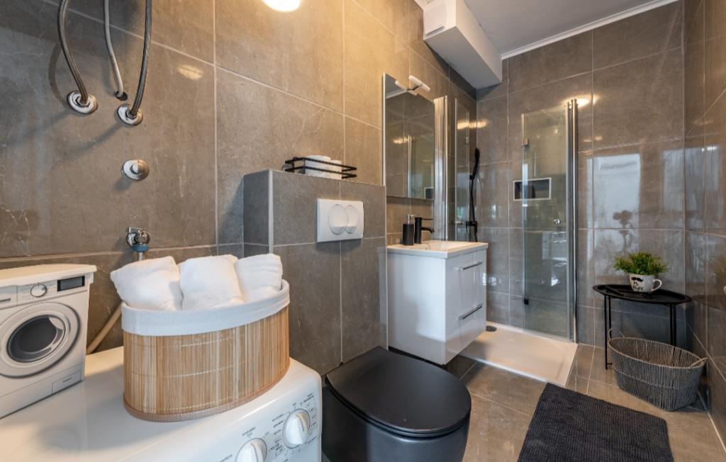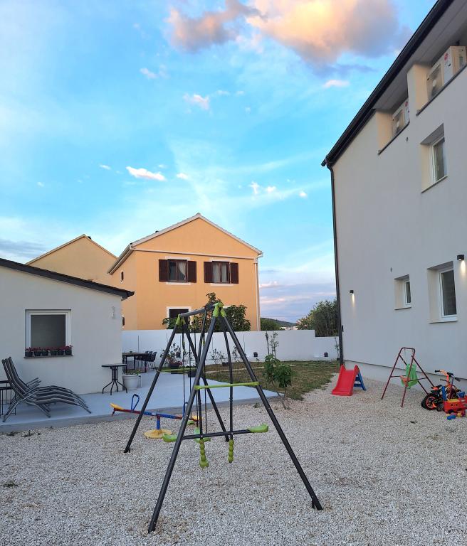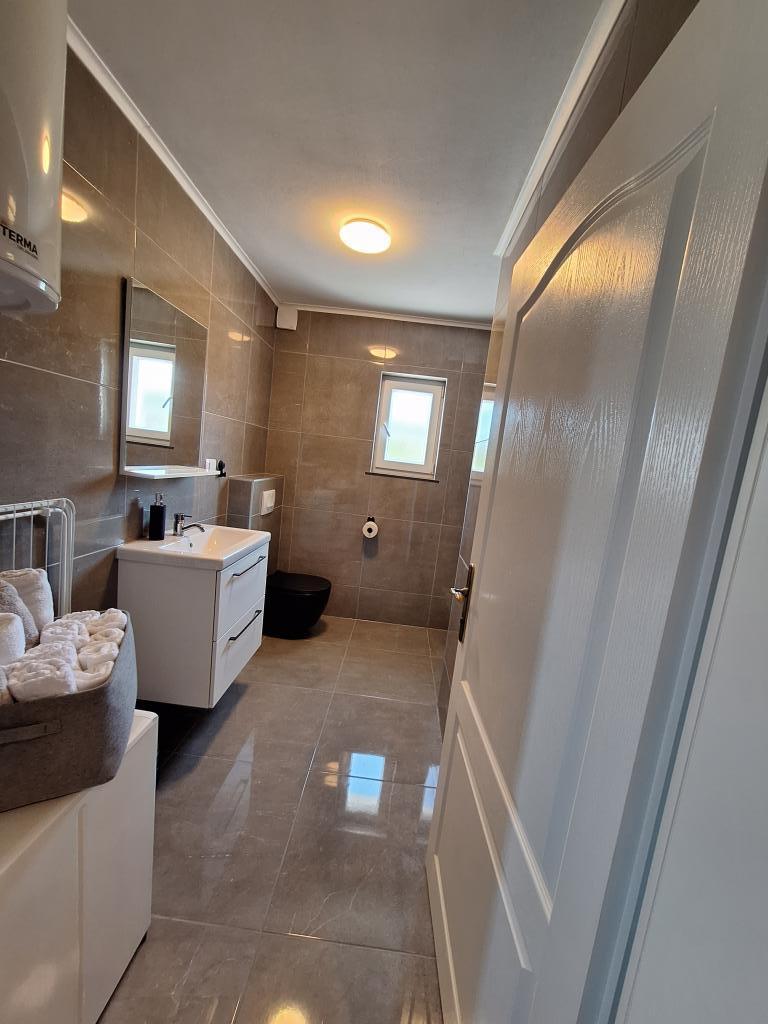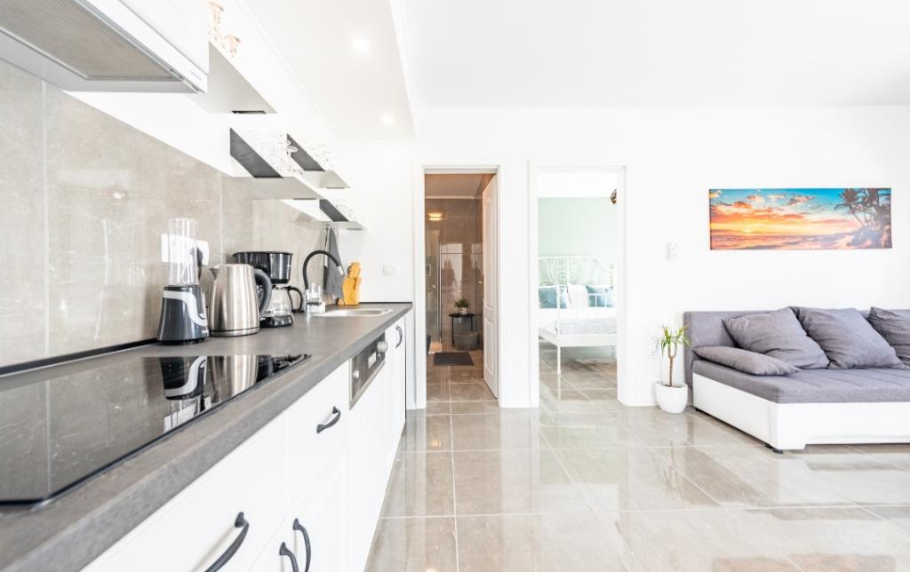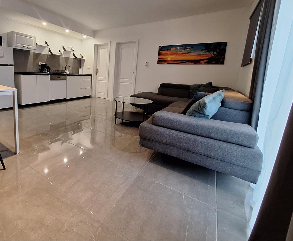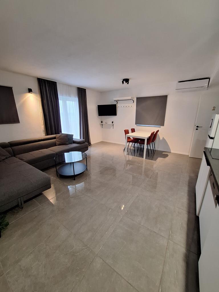 Moderne und voll ausgestattete Apartments in einem ruhigen Teil von Maslenica. Die Anlage liegt im Zentrum, 250 m Fußweg zum Geschäft, 900 m Fußweg vom Hauptstrand. Auf dem Weg zum Strand kommen Sie an einem Kinderspielplatz, mehreren Geschäften, einem Gemüse- und Obststand und einer Bäckerei vorbei.