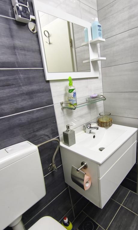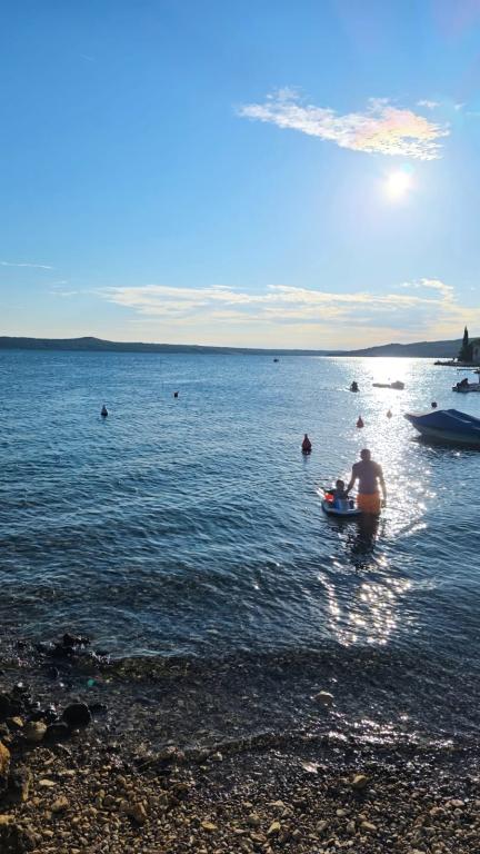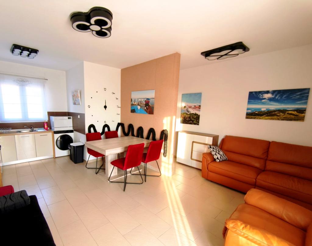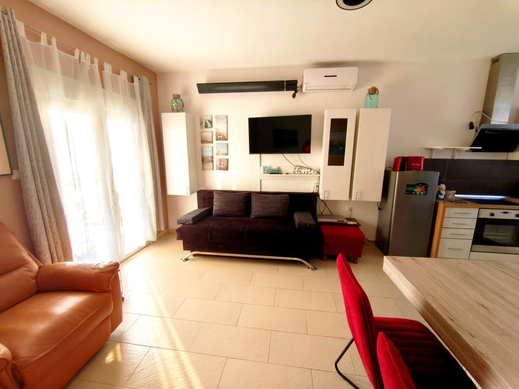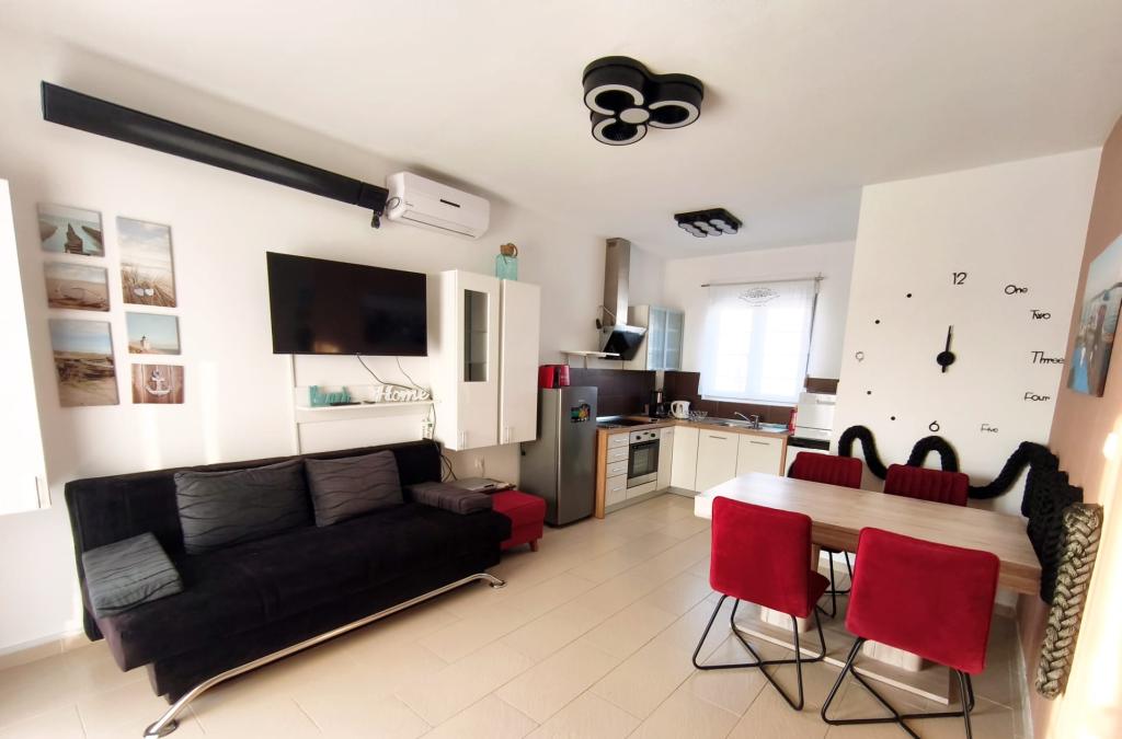Vollständig möbliertes Apartment im Erdgeschoss. Es besteht aus einem Schlafzimmer mit Doppelbett, einer Wohnküche, einem WC und einem Wohnzimmer mit zwei Schlafsofas, von denen eines zu einem zusätzlichen Bett ausgezogen werden kann. Haustiere sind gegen Gebühr willkommen. Wir bieten außerdem einen Liegeplatz/eine Boje an, an der unsere Gäste ihr kleineres Boot festmachen können.