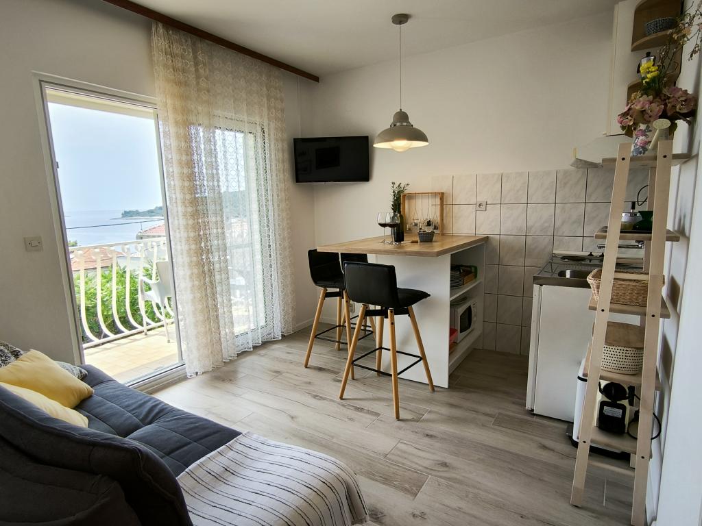 Nach dem Trubel der Stadt ist diese schöne und ruhige Ecke in der wunderbaren Natur am Meer wohltuend. Liebe und nette Gastgeber, modernes, sauberes und geräumiges Apartment mit allem, was man braucht. Wir werden uns an den Morgenkaffee auf dem kleinen Balkon, den wunderschönen Sonnenuntergang und den Nachthimmel auf der größeren Terrasse mit Liegestühlen erinnern. PS Ruhiger Schlaf in einer Gegend ohne Verkehrslärm, ohne Lärm und laute Musik.