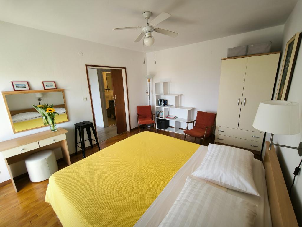 Meine Familie und ich waren hier für fast zwei Wochen. Die Wohnung ist sehr geschmackvoll eingerichtet und eignet sich für eine Familie auch mit drei Kindern. Zwei Terrassen mit einer schönen Aussicht auf die Adria sind erwähnenswert. Die Gastgeber waren sehr freundlich und hilfsbereit. Das Haus hat einen sehr bequemen Weg zum Strand und es ist weniger als 200 Meter.