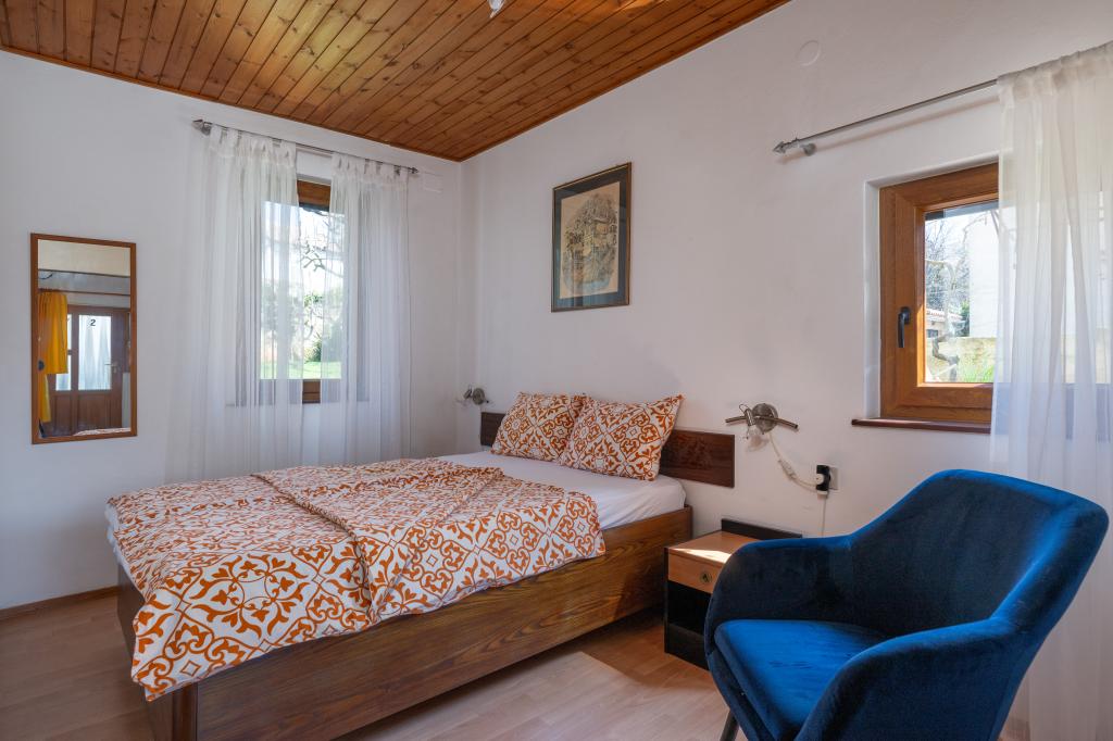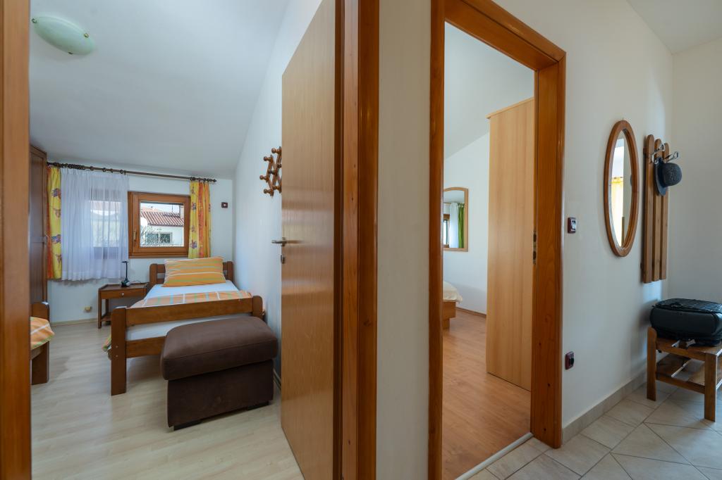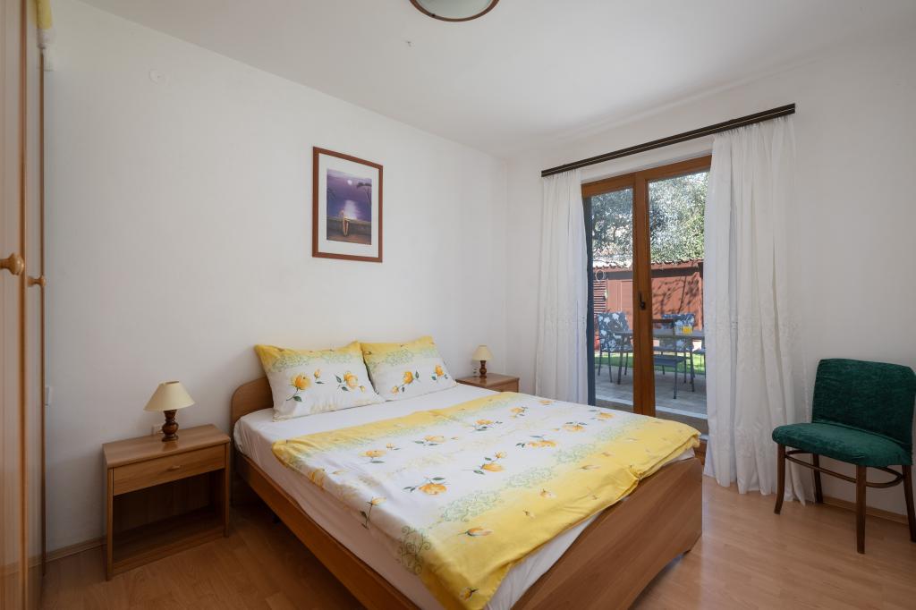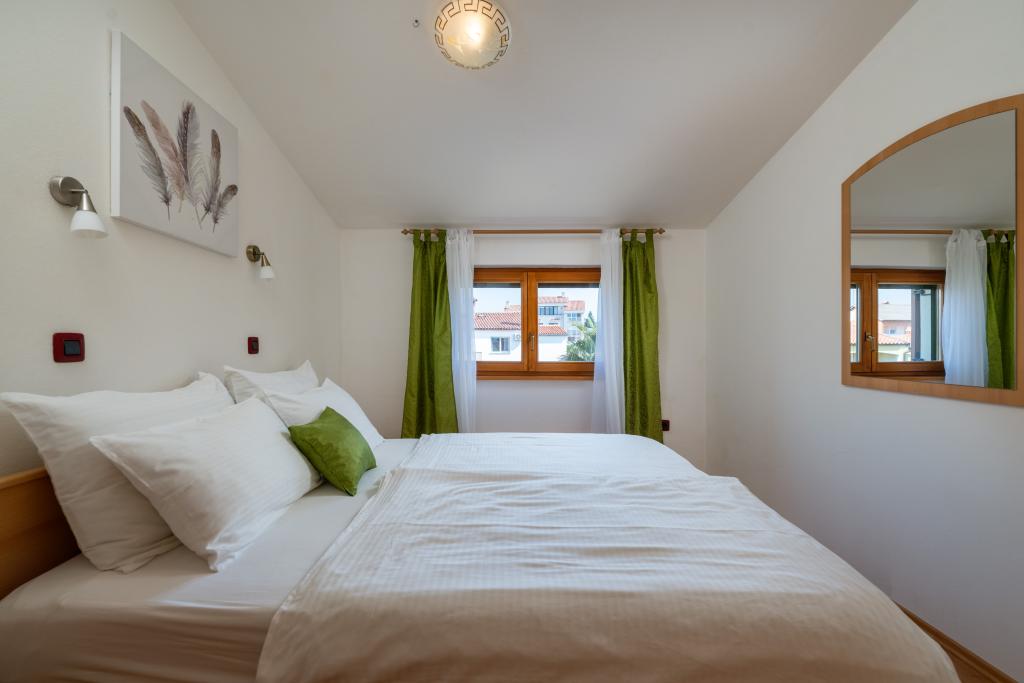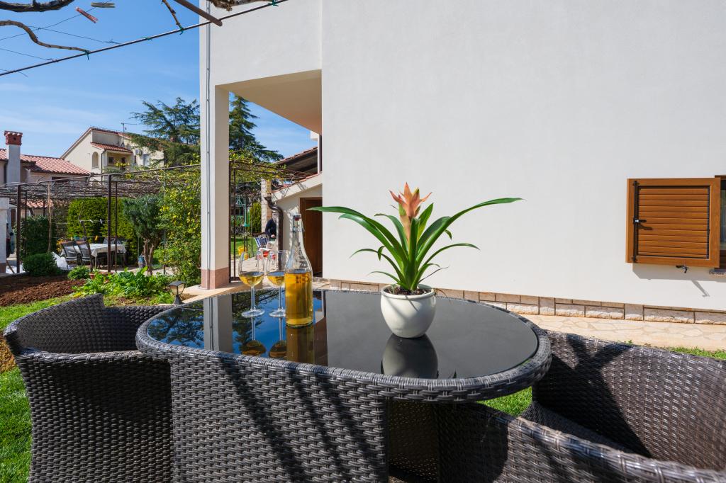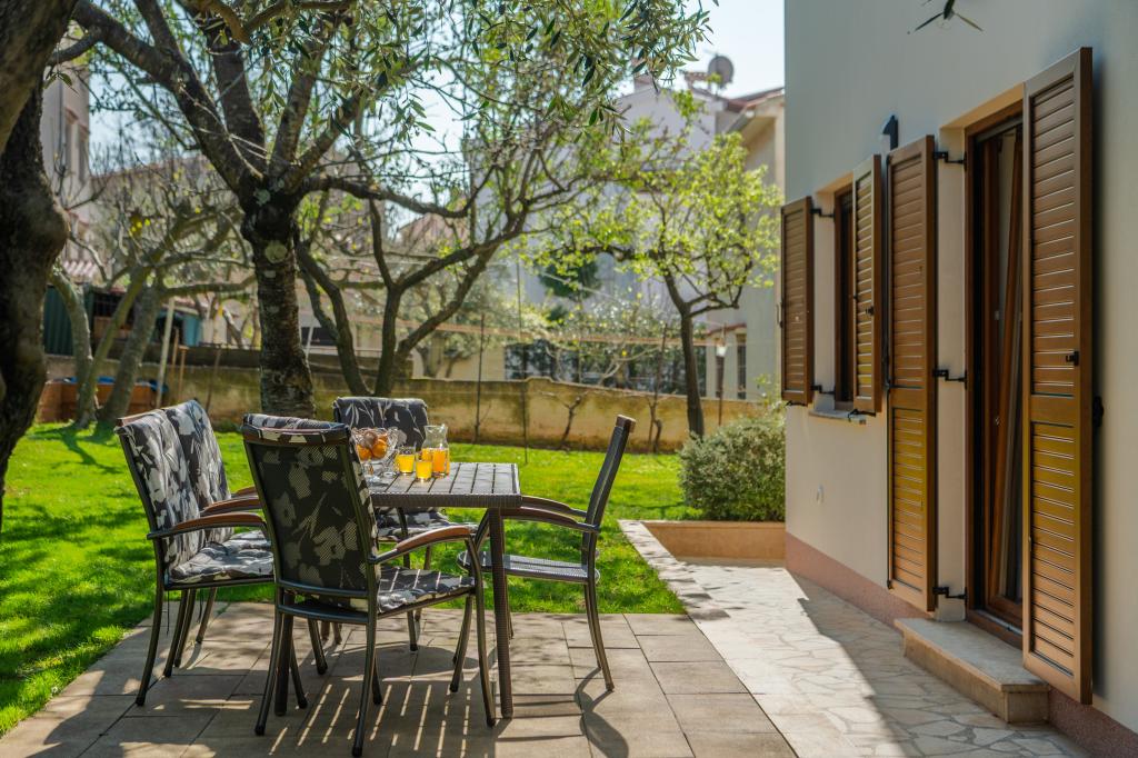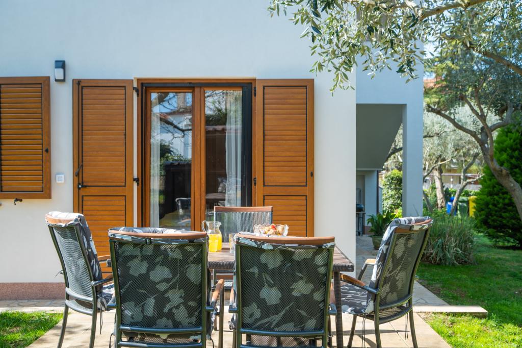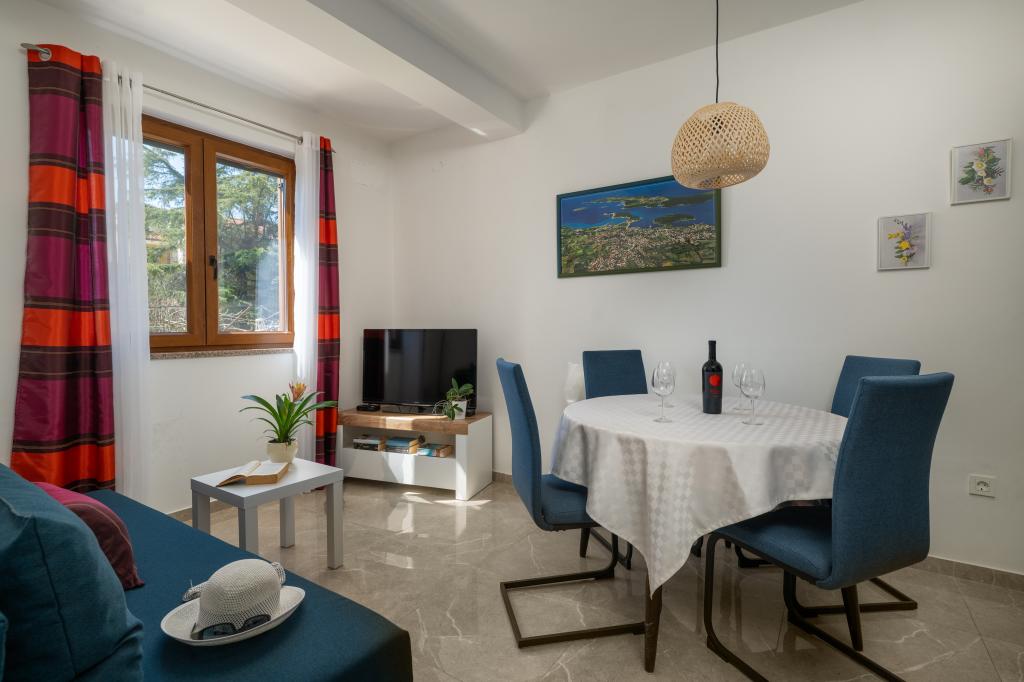 Das Haus liegt in einem ruhigen Teil von Medulin, 250–300 m vom Strand entfernt, mit einem großen Garten und privatem Parkplatz. Es stehen vier komplett und modern ausgestattete Apartments zur Miete bereit. Zwei Apartments befinden sich im Erdgeschoss: Apartment Nr. 1 mit zwei Schlafzimmern, Küche, Wohnzimmer, Bad und Terrasse; Apartment Nr. 2 mit einem Schlafzimmer, Küche, Bad und Gartenterrasse. Im zweiten Stock befindet sich Apartment Nr. 3 mit zwei Schlafzimmern, Küche, Wohnzimmer, Bad und Balkon; Apartment Nr. 4 mit einem Schlafzimmer, Küche, Wohnzimmer, Bad und Balkon. Alle Apartments verfügen über Klimaanlage, WLAN und Sat-TV. Bettwäsche, Handtücher, Kurtaxe und Registrierung sind im Preis inbegriffen. Jedes Apartment hat einen eigenen Parkplatz, einen Garten und einen tragbaren Grill. Waschmaschinenmiete: 5 Euro, Zustellbett: 10 Euro. Parkplatz und Hof sind videoüberwacht.