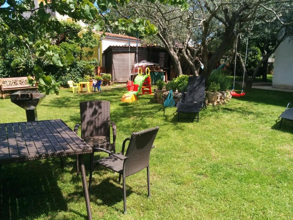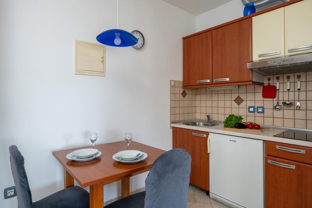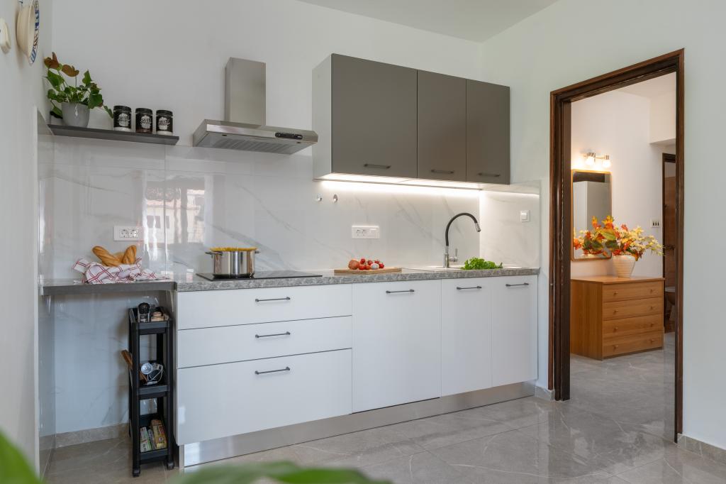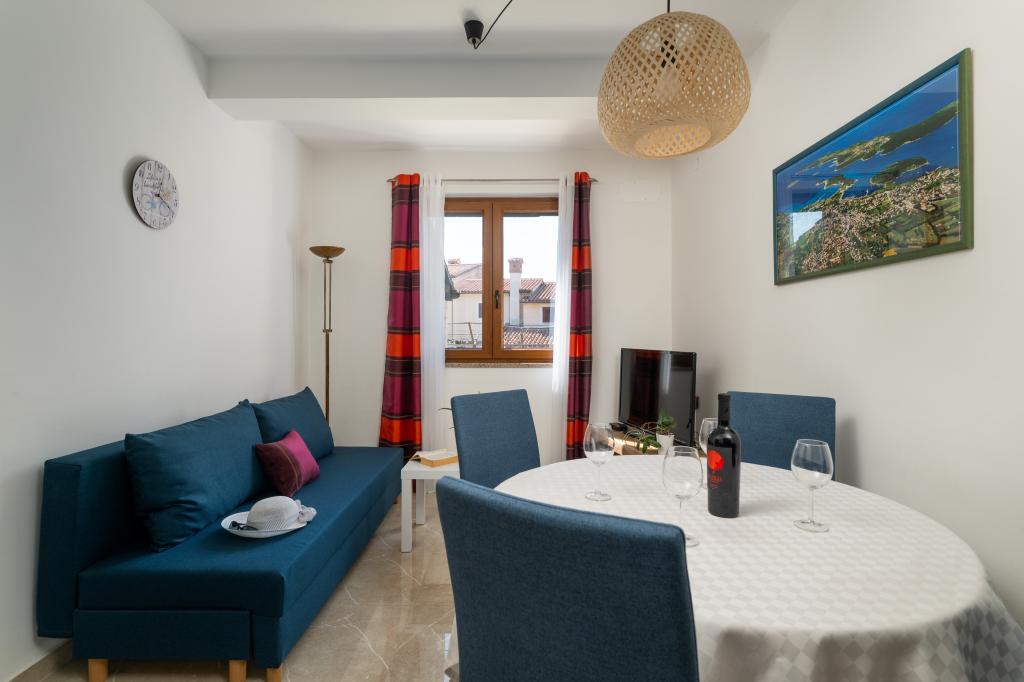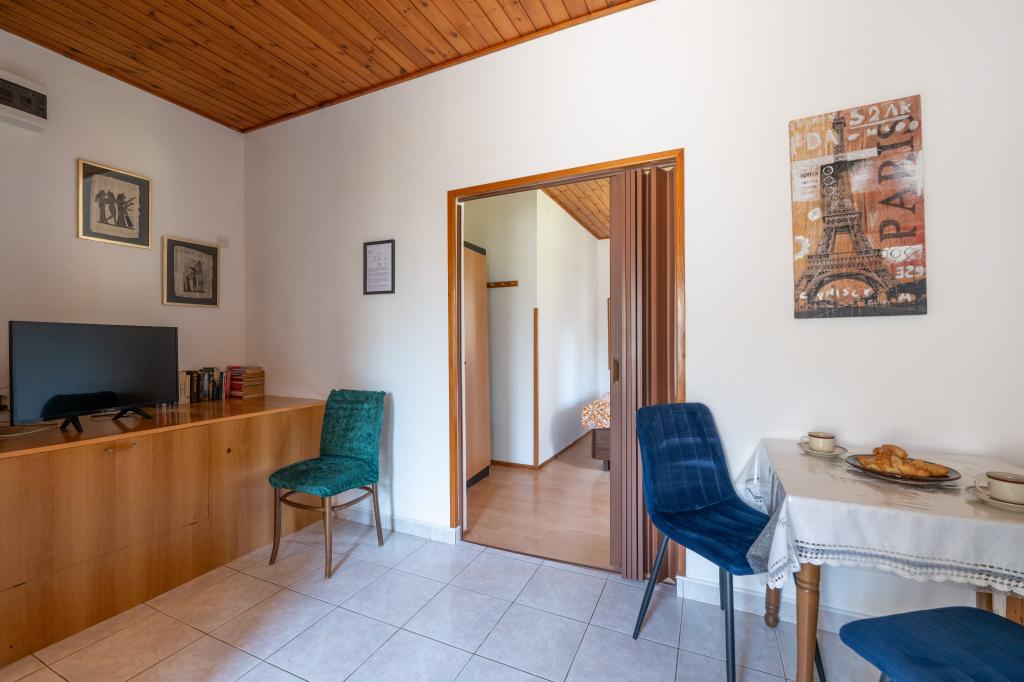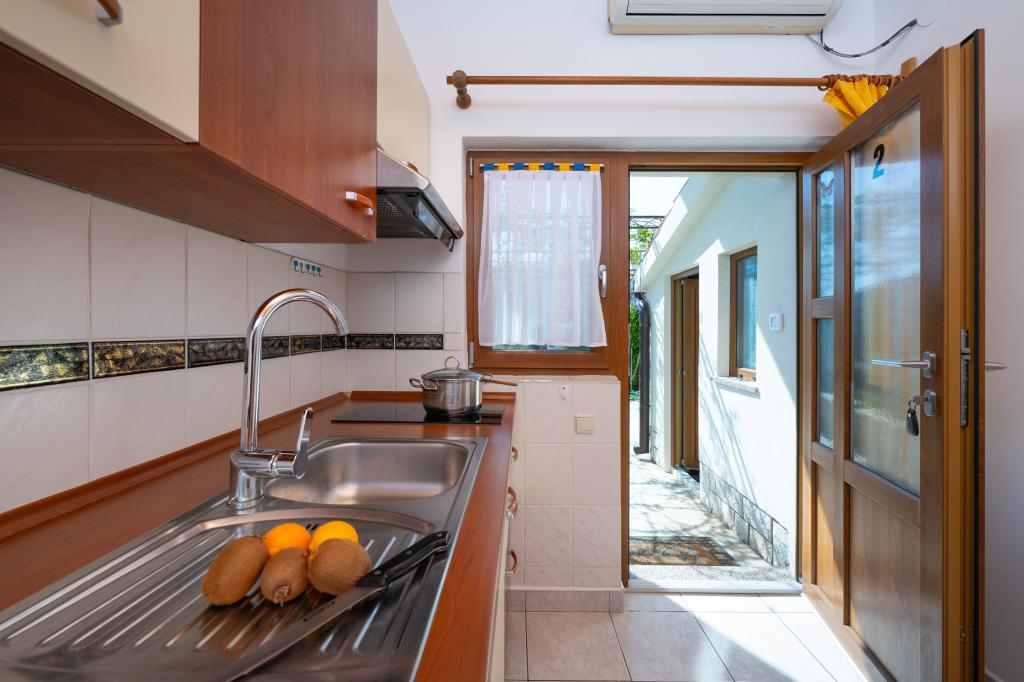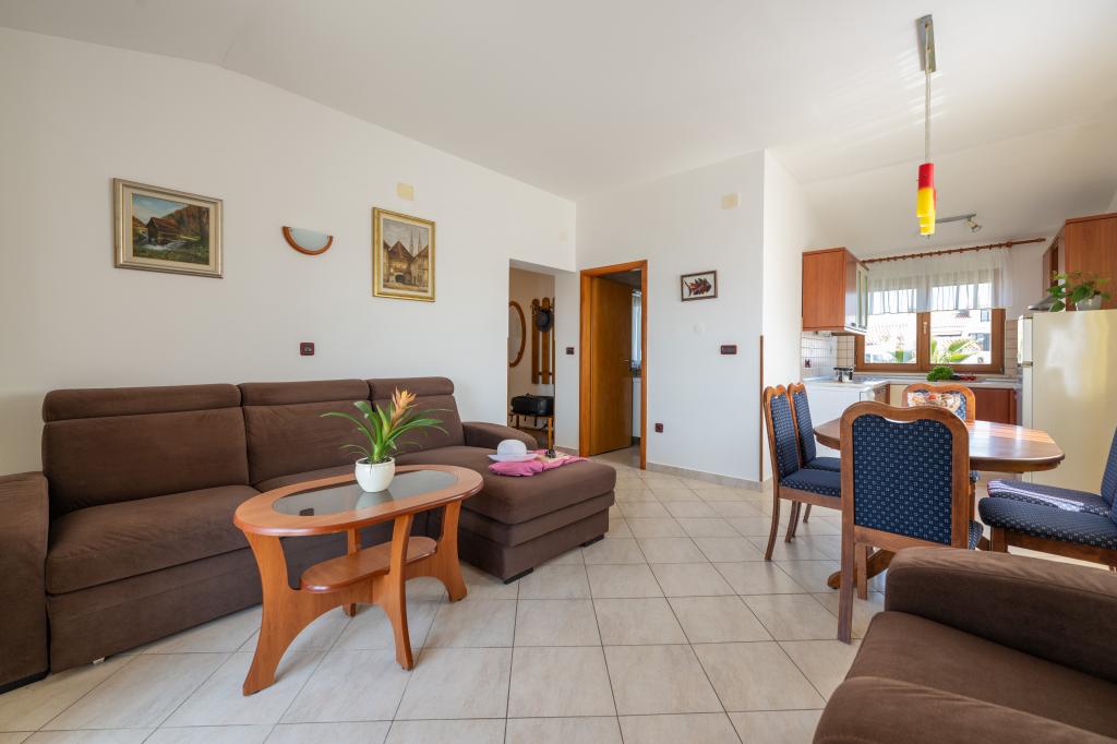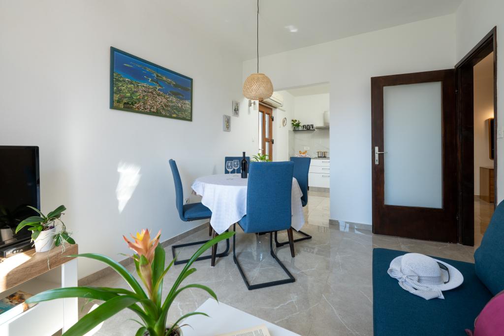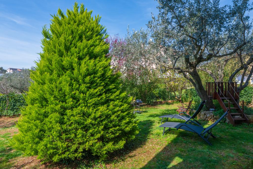 Das Haus liegt in einem ruhigen Teil von Medulin, 250–300 m vom Strand entfernt, mit einem großen Garten und privatem Parkplatz. Es stehen vier komplett und modern ausgestattete Apartments zur Miete bereit. Zwei Apartments befinden sich im Erdgeschoss: Apartment Nr. 1 mit zwei Schlafzimmern, Küche, Wohnzimmer, Bad und Terrasse; Apartment Nr. 2 mit einem Schlafzimmer, Küche, Bad und Gartenterrasse. Im zweiten Stock befindet sich Apartment Nr. 3 mit zwei Schlafzimmern, Küche, Wohnzimmer, Bad und Balkon; Apartment Nr. 4 mit einem Schlafzimmer, Küche, Wohnzimmer, Bad und Balkon. Alle Apartments verfügen über Klimaanlage, WLAN und Sat-TV. Bettwäsche, Handtücher, Kurtaxe und Registrierung sind im Preis inbegriffen. Jedes Apartment hat einen eigenen Parkplatz, einen Garten und einen tragbaren Grill. Waschmaschinenmiete: 5 Euro, Zustellbett: 10 Euro. Parkplatz und Hof sind videoüberwacht.