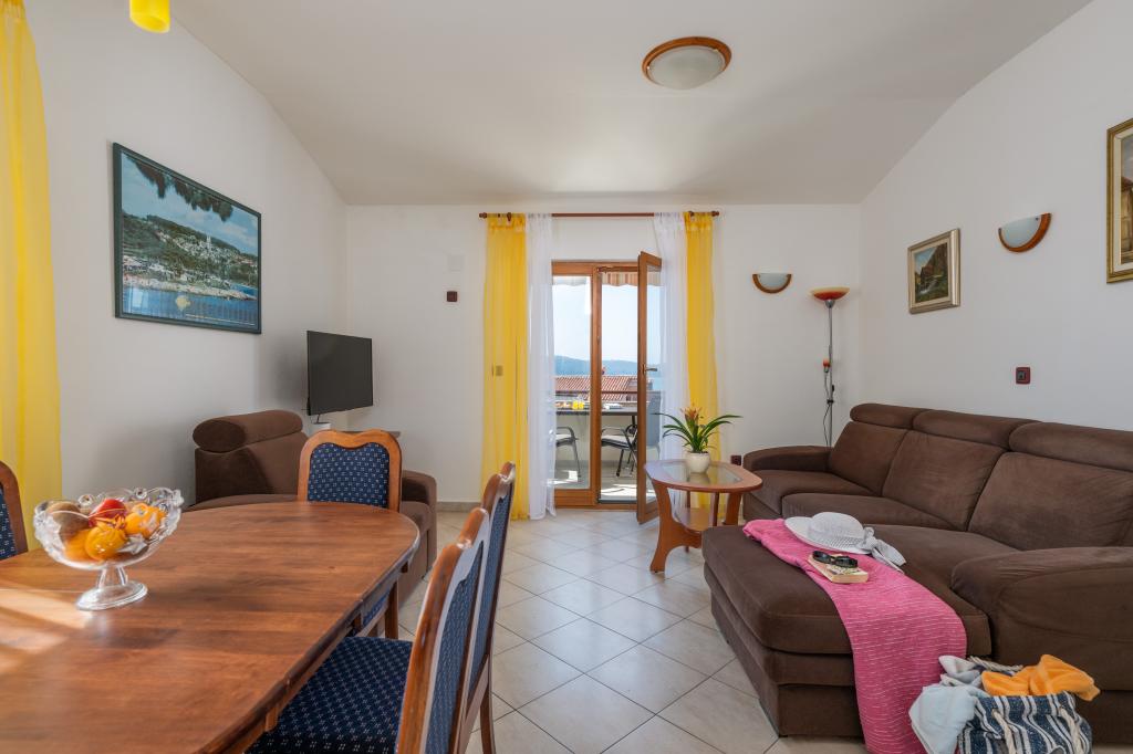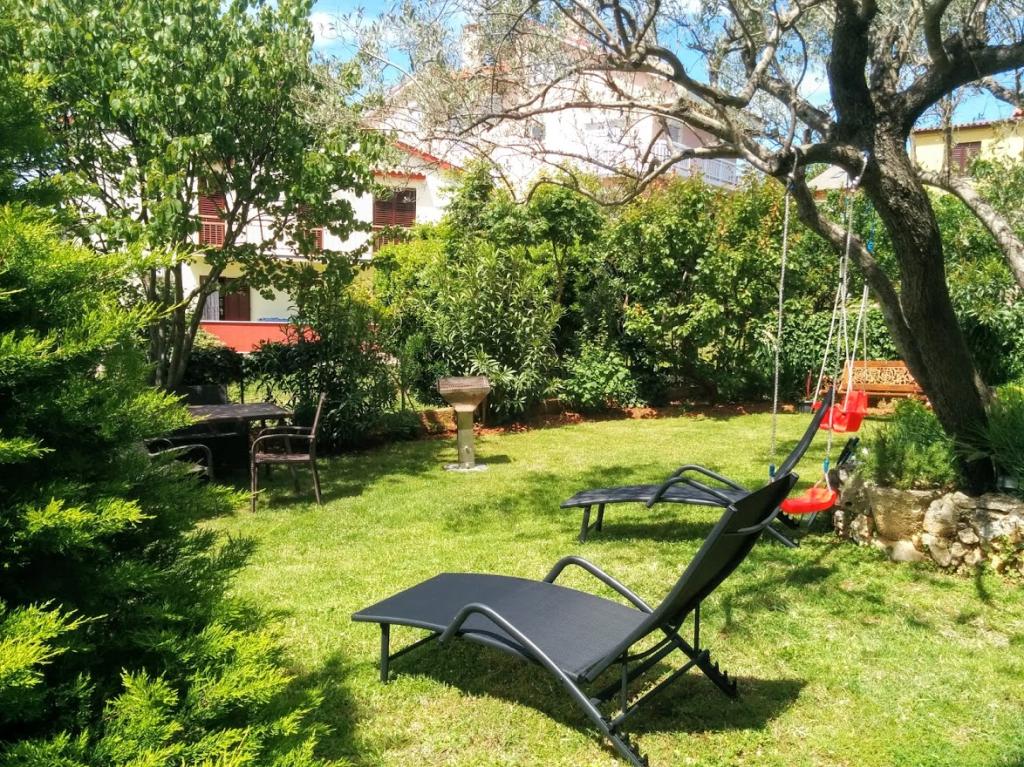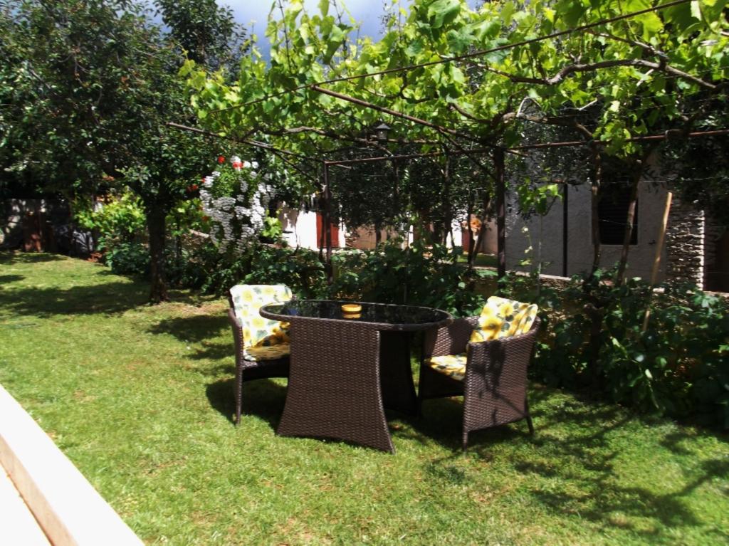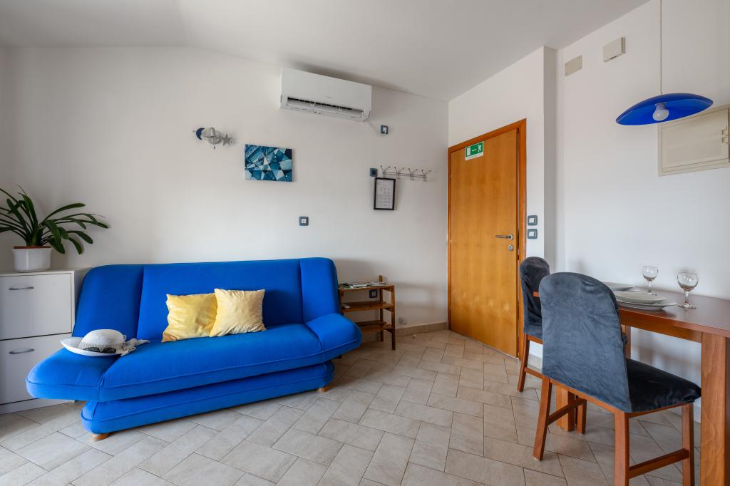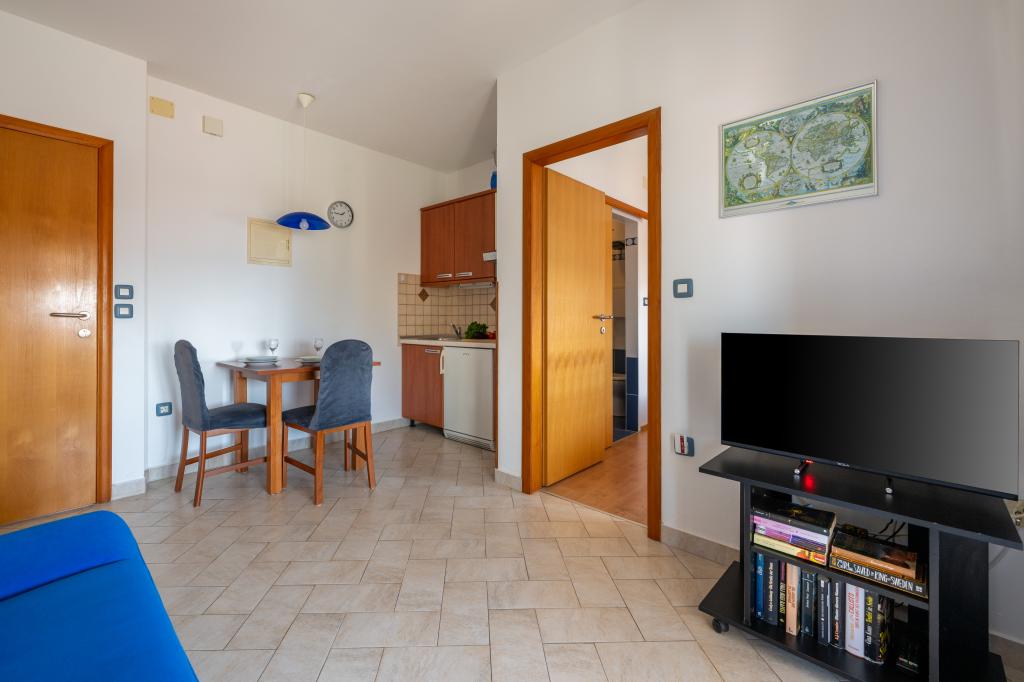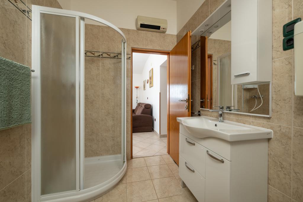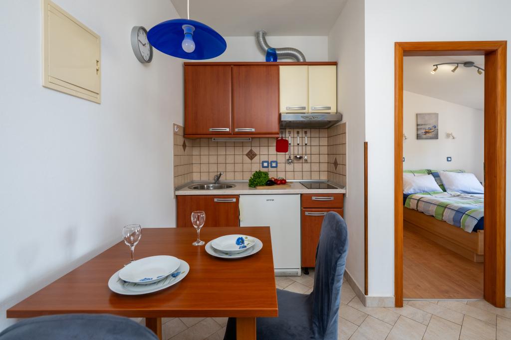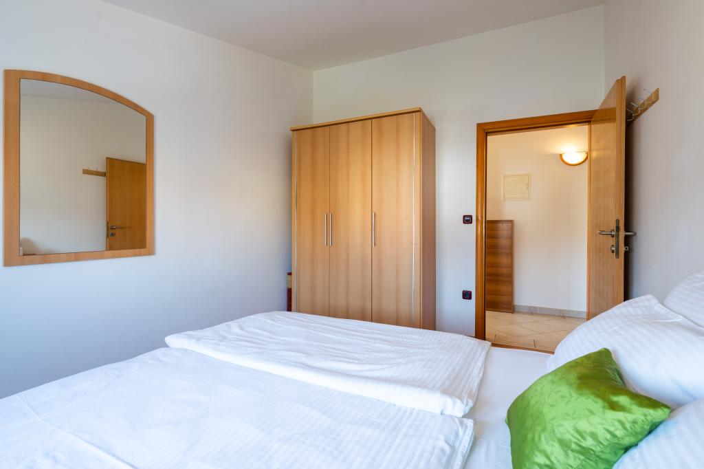 Das Haus liegt in einem ruhigen Teil von Medulin, 250–300 m vom Strand entfernt, mit einem großen Garten und privatem Parkplatz. Es stehen vier komplett und modern ausgestattete Apartments zur Miete bereit. Zwei Apartments befinden sich im Erdgeschoss: Apartment Nr. 1 mit zwei Schlafzimmern, Küche, Wohnzimmer, Bad und Terrasse; Apartment Nr. 2 mit einem Schlafzimmer, Küche, Bad und Gartenterrasse. Im zweiten Stock befindet sich Apartment Nr. 3 mit zwei Schlafzimmern, Küche, Wohnzimmer, Bad und Balkon; Apartment Nr. 4 mit einem Schlafzimmer, Küche, Wohnzimmer, Bad und Balkon. Alle Apartments verfügen über Klimaanlage, WLAN und Sat-TV. Bettwäsche, Handtücher, Kurtaxe und Registrierung sind im Preis inbegriffen. Jedes Apartment hat einen eigenen Parkplatz, einen Garten und einen tragbaren Grill. Waschmaschinenmiete: 5 Euro, Zustellbett: 10 Euro. Parkplatz und Hof sind videoüberwacht.