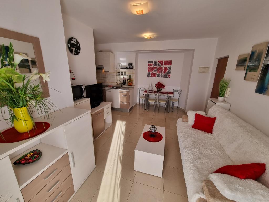 Die Gesamtkapazität der gesamten Anlage beträgt 26 Personen und eignet sich für Sportmannschaften und größere Personengruppen. Voll ausgestattete Apartments in einem ruhigen Teil von Medulin, direkt über dem Hotel und dem Fußballplatz. 10 Gehminuten zum Sandstrand, 5 Gehminuten ins Zentrum. Der angelegte Garten mit Rasen lädt zum Ausruhen und Spielen für Kinder ein. Für jede Wohnung stehen Parkplätze vor dem Gebäude zur Verfügung. Die Garage steht für Fahrräder, Wohnmobile, Motorräder und alle großen Dinge für das Meer zur Verfügung... Ideal für Motorradfahrer oder Radfahrer oder Surfer. Elektrofahrzeuge können in der Garage aufgeladen werden.
