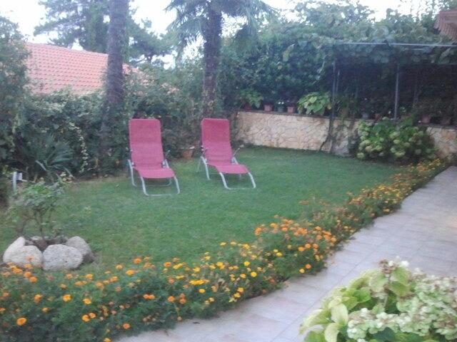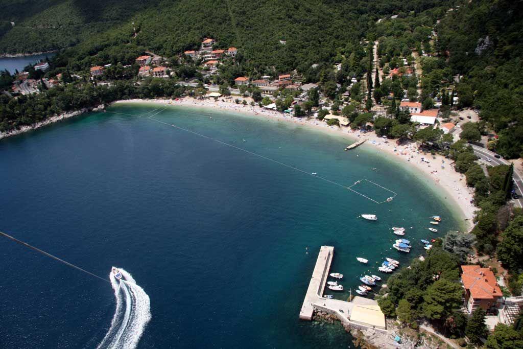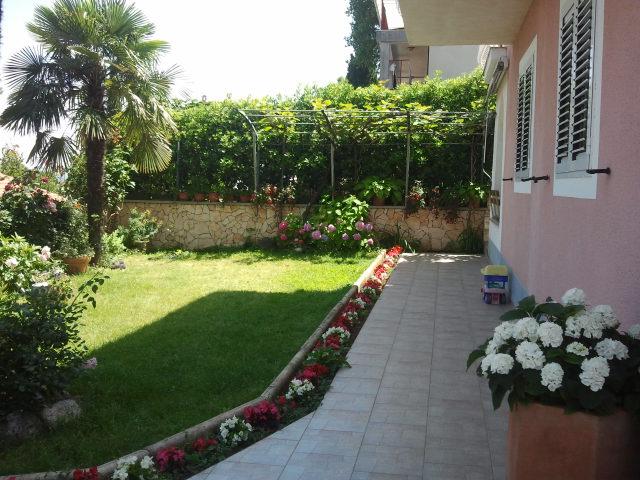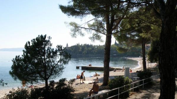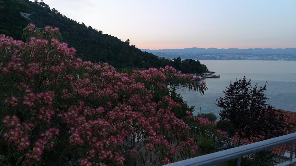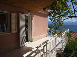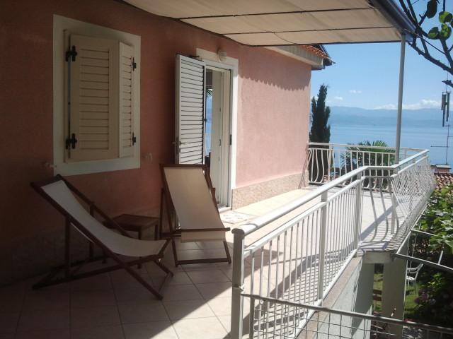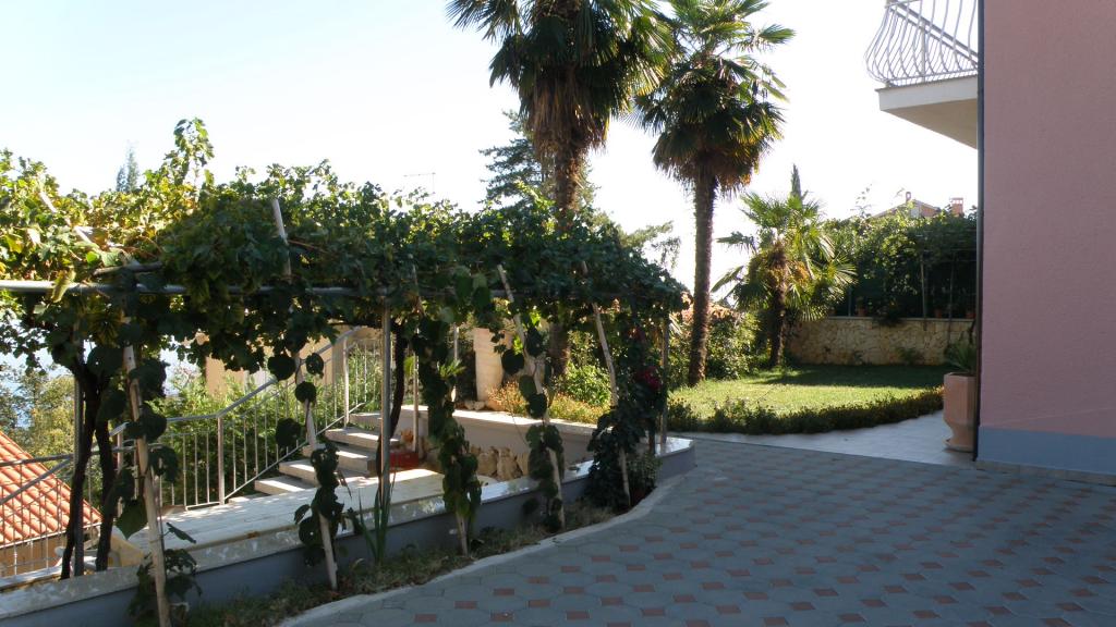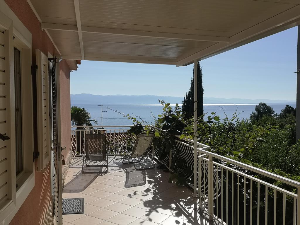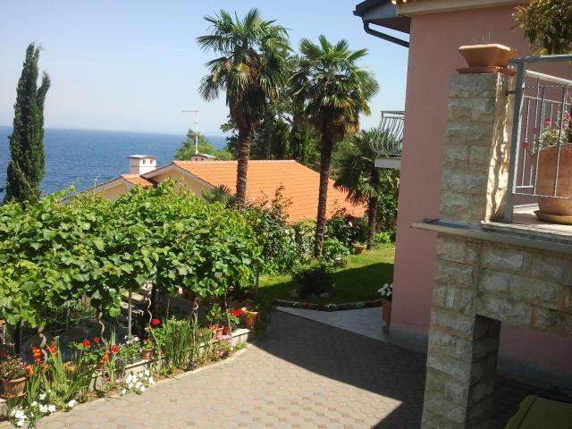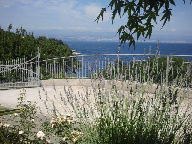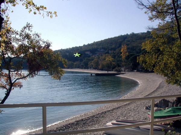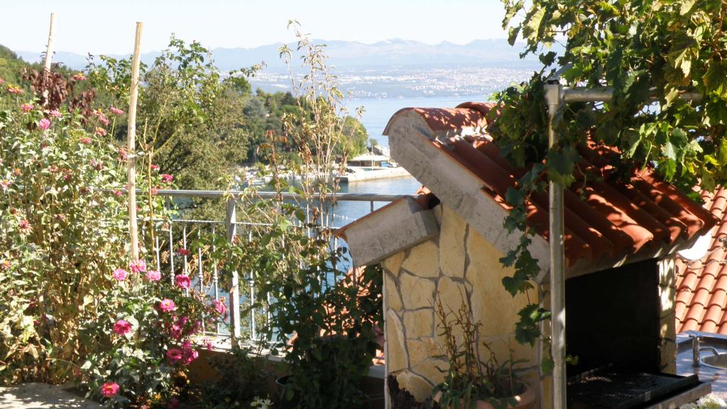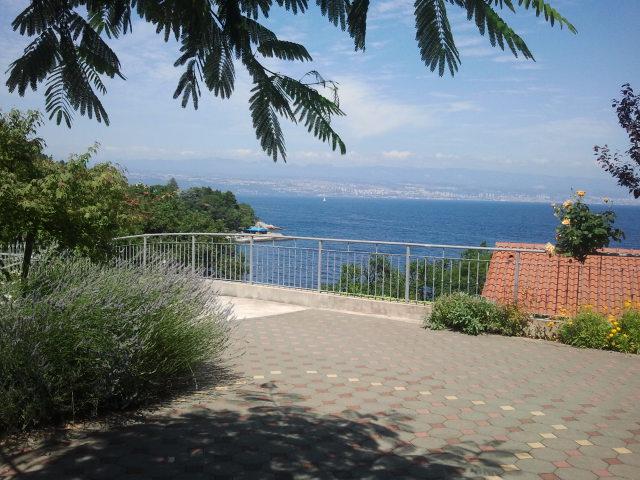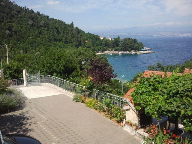 Das Haus liegt im Grünen oberhalb des Kiesstrandes, an den Hängen des Naturparks Učka. Im umzäunten Hof gibt es einen Parkplatz, einen Blumengarten, eine Rasenfläche, einen gemauerten Grill mit einem Tisch für 12 Personen. Im südlichen und östlichen Teil des Hauses befinden sich zwei komplett ausgestattete und modern eingerichtete Apartments mit Terrassen, die größtenteils überdacht sind und den ganzen Tag über einen angenehmen Aufenthalt ermöglichen. Beide Wohnungen und beide Terrassen haben Meerblick. Gästen, die beide Wohnungen mieten, steht der gesamte Garten zur freien Verfügung. Durch die 60m Strandnähe und den großzügigen Innen- und Außenbereich ist die Unterkunft ideal für Familien mit Kindern und Haustieren. Außergewöhnlich große, gemütliche Terrasse der Wohnung im ersten Stock mit wunderschönem Blick auf das Meer, ruhige Umgebung, kristallklares Meer, Möglichkeit für Aktivurlaub, Waldwege, Lungomare, Mountainbiken, in der Nähe von Opatija. Die Erdgeschosswohnung verfügt über zwei separate Schlafzimmer mit je 3 und 2 Betten + zwei Badezimmer, Wohnzimmer + 2 Zusatzbetten. Die Wohnung im Obergeschoss verfügt über zwei Zimmer mit 2 und 3 Betten.