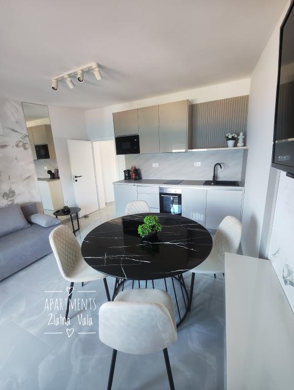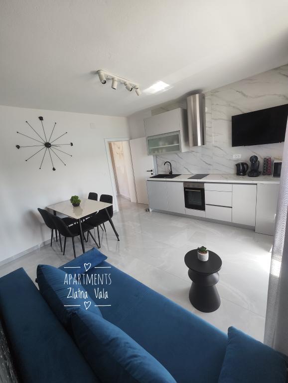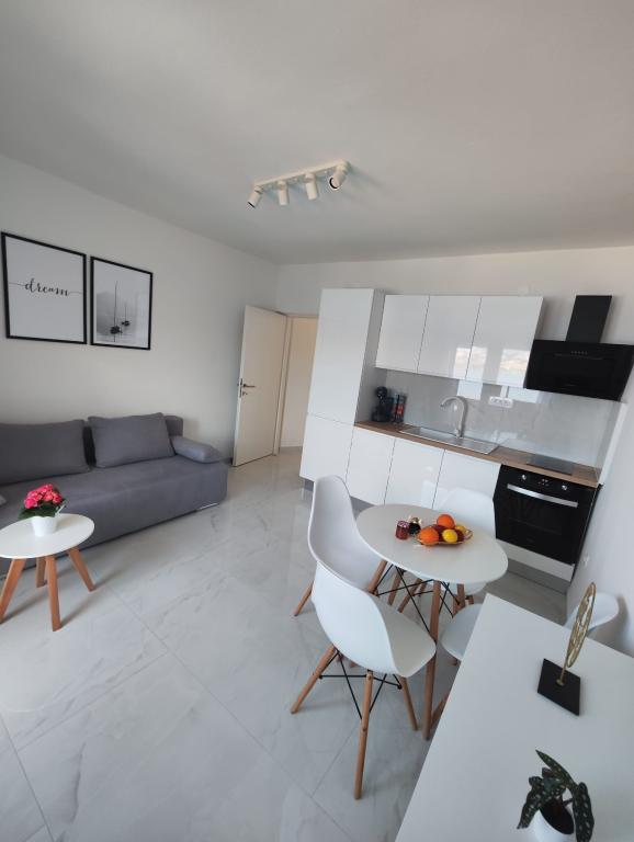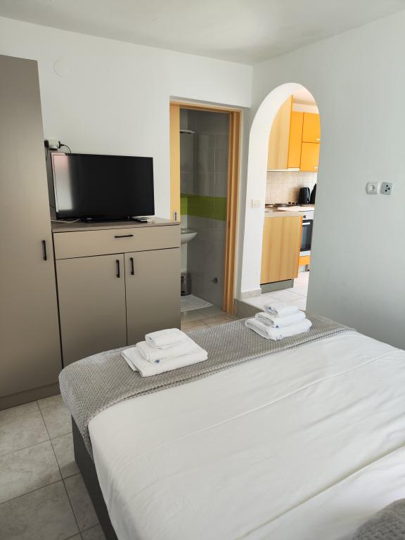 Wir machen seit mehreren Jahren Urlaub in Kroatien. Normalerweise probieren wir während eines Urlaubs mehrere Unterkünfte aus und müssen sagen, dass dies bisher unser bestes Apartment war! Das Apartment bietet viel Platz für eine vierköpfige Familie – wir haben uns darin sehr wohl gefühlt. Es ist modern eingerichtet, macht einen luxuriösen Eindruck, ist äußerst sauber (es sah fast brandneu aus) und verfügt über einen Balkon mit atemberaubendem Blick auf den Hauptstrand und die gesamte Metajna-Bucht, wo wir fast jeden Abend den Sonnenuntergang genossen haben. Die Wohnung ist hervorragend ausgestattet. Neben nützlichen Geräten wie Geschirrspüler, Induktionskochfeld, Klimaanlage, WLAN (mit starkem Signal) etc. gibt es auch eine Kaffeemaschine und einen Stabstaubsauger, was besonders Familien mit Kindern sehr schätzen. Wir erhielten unbegrenzt Geschirrspültabs sowie Kaffeekapseln. Direkt am Apartmenthaus können Sie zwei Grills nutzen und in Hängesesseln auf der Terrasse entspannen. Während unseres Aufenthalts liehen uns die Gastgeber freundlicherweise ihre Paddleboards, sodass wir das Paddleboarden zum ersten Mal ausprobieren konnten. Die Apartments verfügen außerdem über einen großen Parkplatz direkt über dem Gebäude. All diese Details tragen zum Komfort und dem angenehmen Wohngefühl bei. Am Tag unserer Ankunft fanden wir eine Geschenktüte mit selbstgemachten Marmeladen auf dem Tisch, die die Gastgeber selbst zubereitet hatten. Das war eine wirklich schöne Überraschung. Die Gastgeber waren vom ersten Moment an sehr freundlich und kommunikativ. Sie halfen uns problemlos bei allem, was wir brauchten, und waren immer hilfsbereit. Während unseres Aufenthalts überraschte uns die Gastgeberin zweimal mit einem vollen Teller frischer Pfannkuchen und einem leckeren Kuchen. Der nächste Strand – der Hauptstrand von Metajna – ist nur etwa zwei Gehminuten durch die Straßen von Metajna entfernt. Gleich hinter einem kleinen Hügel befindet sich der wunderschöne Strand Ručica. Ich empfehle, dort ein Tretboot zu mieten und den nahegelegenen Strand Beritnica mit seinen atemberaubenden Sandsteinfelsen zu erkunden. Bei Sonnenuntergang genossen wir einen Spaziergang entlang des Küstenwanderwegs „Life on Mars“, der am Ende des Strandes in Metajna beginnt und in einer Schleife zum Strand Ručica führt. Wie ich bereits zu Beginn dieser Bewertung erwähnt habe, ist diese Wohnung mit Abstand die beste, die wir in Kroatien gemietet ha
