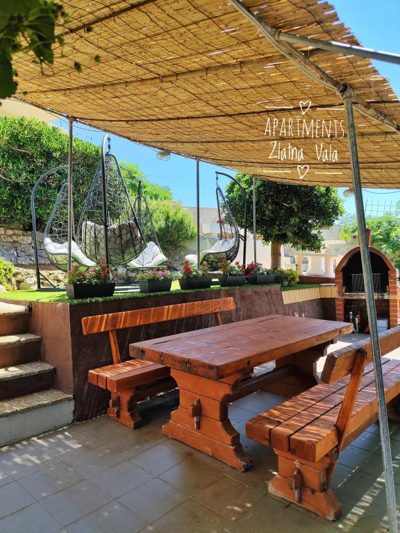 Die Apartments Bingula befinden sich auf einem kleinen Hügel namens Glavica, 150 m vom Meer und dem Zentrum von Metajna entfernt. Die Nähe des Zentrums und des Meeres ermöglicht es unseren Gästen, in kurzer Zeit in der Mitte von Veranstaltungen zu sein und sich in die Ruhe zurückzuziehen, die unsere Seite bietet. Für unsere Gäste gibt es mehrere Terrassen mit gemeinsamem Grill, und für die jüngsten Gäste haben wir einen kleinen Spielplatz, damit sich die Eltern uneingeschränkt entspannen können. Alle Wohnungen sind voll und modern ausgestattet: Küche mit Wohnzimmer, Bad mit WC, Klimaanlage, SAT-TV, WLAN, Balkon mit Meerblick .... Für diejenigen, die sich für Halbpension entscheiden, bieten wir kroatische Spezialitäten und internationale Spezialitäten mit kroatischen Lebkuchen an. Wenn Sie etwas verpassen, gibt es immer Ihre Gastgeber, die gerne kommen und Sie treffen. Wir freuen uns auf Ihre Ankunft, Familie Bingula