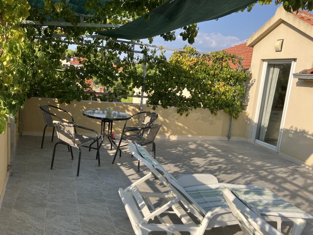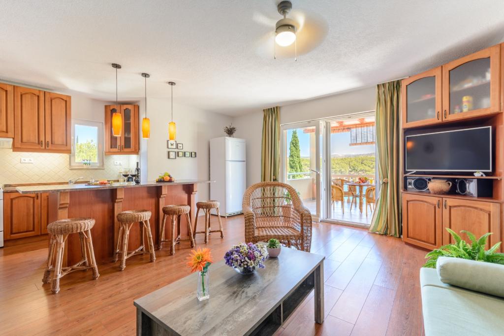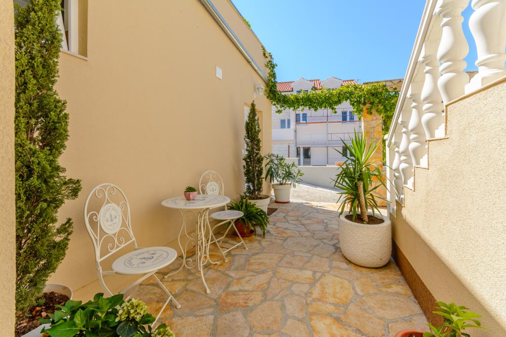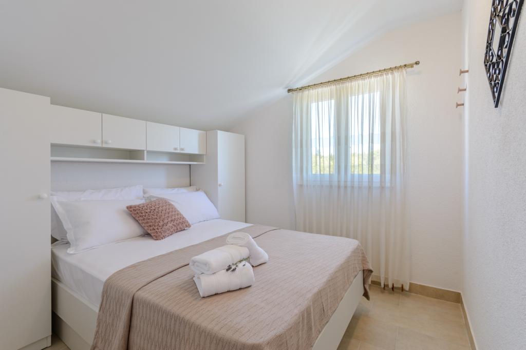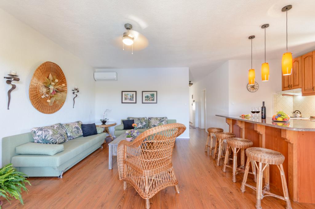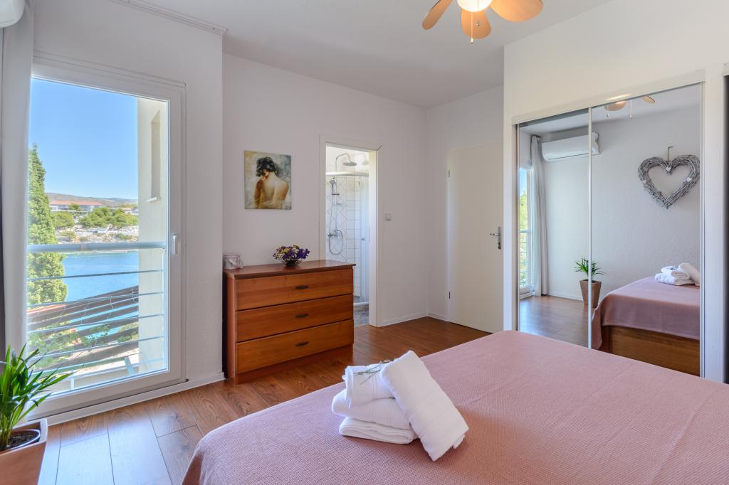 Top Lage, nah am Meer. Große Terrasse mit Meerblick. Die Wohnung ist sehr schön eingerichtet und sauber. Das Bett ist sehr bequem. Die Wohnung bietet alles, was man braucht. Liegen, Sonnenschirme und Handtücher für den Strand sind vorhanden. Das Meer ist wunderschön und die Strände sind gepflegt und kinderfreundlich. Frau Ivanka ist eine sehr freundliche und herzliche Person. Sehr zu empfehlen!