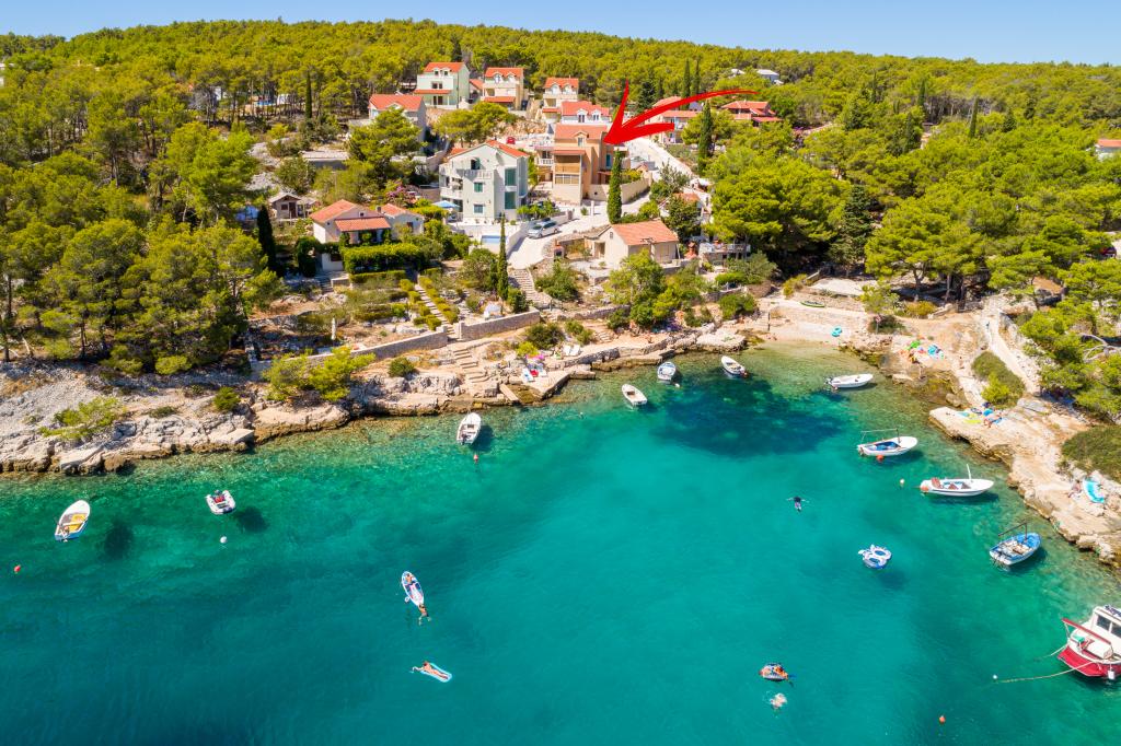 Ein ruhiger Ort für einen Familienurlaub, ein geräumiges, schön eingerichtetes Apartment, Liegestühle und Strandtücher stehen den Gästen zur Verfügung. Das Meer liegt nur wenige Schritte von der Wohnung entfernt. Der Besitzer ist sehr nett, aufmerksam. Zur Stadt Milna laufen Sie etwa 30 Minuten durch den Olivenhain. Wir empfehlen.