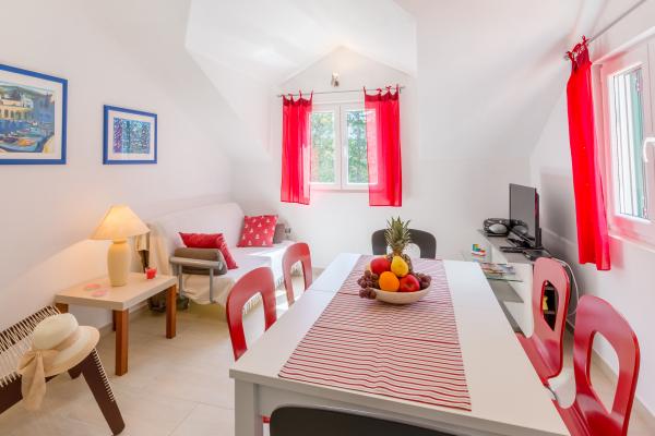 Neu gebaut und moderne Wohnung in einer ruhigen Bucht an der Süd-Westen der Insel. Es liegt in der Nähe zum Meer in einem Kiefernwald, weit weg von der Insel 15-minütigen Spaziergang.