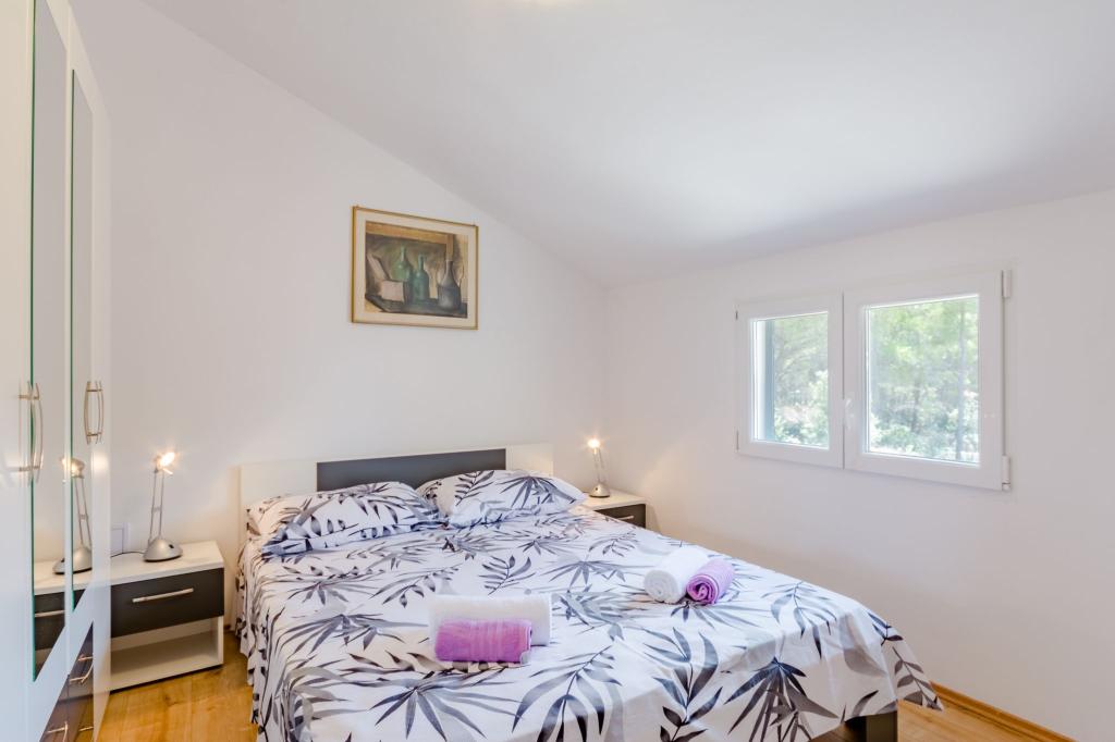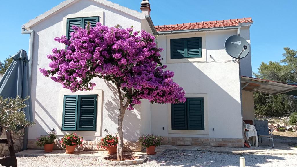 Das Apartment Maja befindet sich im ersten Stock eines Hauses in wunderschöner mediterraner Lage in der ruhigen Bucht von Osibova an der Südküste der Insel Brač. Das Haus liegt 200 Meter vom Meer entfernt. Das 58 m² große Apartment ist über eine Außentreppe erreichbar und verfügt über zwei Schlafzimmer. In einem Zimmer befindet sich ein 160 cm breites Doppelbett, im anderen zwei 90 cm breite Einzelbetten, die üblicherweise zu einem 180 cm breiten Doppelbett zusammengestellt werden. Auf Wunsch können die Betten auch getrennt werden. Das Apartment ist klimatisiert (zwei Klimaanlagen, eine im Schlafzimmer und eine im Wohnzimmer). Sat-TV, kostenloses WLAN und ein Parkplatz stehen den Gästen zur Verfügung. Zum Apartment gehört außerdem ein Garten mit Innenhof und überdachter Veranda (Pavillon) mit Essbereich, Grill, Spülbecken und Zubehör. Eine Außendusche mit Warm- und Kaltwasser kann ebenfalls genutzt werden. Geschäfte und Restaurants befinden sich in der Stadt Milna, etwa 2 km von den Apartments entfernt.