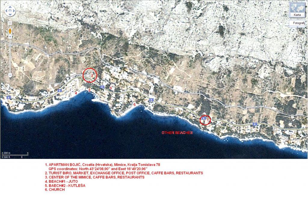 Die Apartments Bojić befinden sich in Mimice, 12 km von Omis in Richtung Makarska an der Grenze zu Marusici. Sie sind 15 m von der Hauptstraße und 500 m vom Zentrum entfernt. Das Haus besteht aus drei Wohnungen, alle Wohnungen haben einen Balkon mit Blick auf das Meer, bieten einen angenehmen, sicheren und ruhigen Urlaub für die ganze Familie, abseits des Zentrums, mit einem Strand ohne viele Badegäste. Das Meer ist extrem sauber (Unterwasserquellen und Strom) zum Schwimmen und Tauchen. Wir sprechen sehr gut Englisch, wir verwenden Tschechisch, Italienisch und Deutsch in der Kommunikation. Klimaanlage, WLAN, Kurtaxe und Parkplätze sind im Preis inbegriffen. Wir helfen den Gästen, die notwendigen Informationen zu finden und organisieren nach Absprache zusätzliche Aktivitäten.