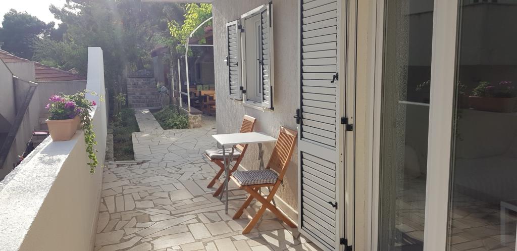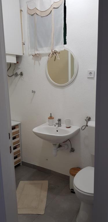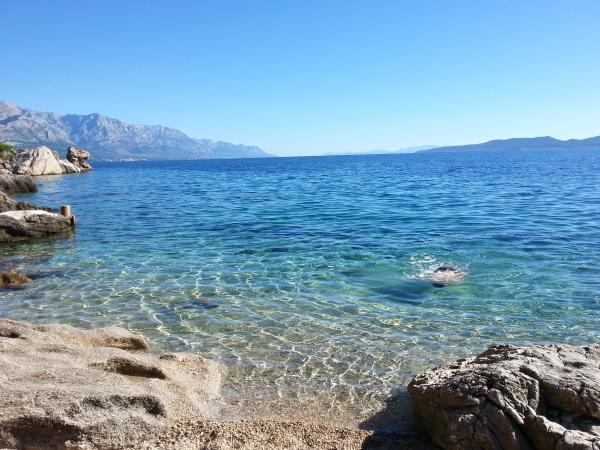 Das Haus liegt in Mimice hinter Omis. Es gibt drei Wohnungen, eine im Erdgeschoss und zwei im Obergeschoss. Voll ausgestattet. Das Erdgeschoss verfügt über einen Garten und auf den Balkon im Obergeschoss. 30m vom Strand entfernt. Ideal für zu Hause, kein Lärm, eine Oase der Ruhe und Beschaulichkeit. Empfehlung für Familien mit Kindern und Paare, die Ruhe brauchen. Für junge Menschen, die die notwendigen Einrichtungen (Disco, Nachtclub usw. ...) haben, können sie in den nahe gelegenen Städten Omis, 10 Minuten Fahrt zu finden und Makarska ist 20 Minuten entfernt, und dann in Ruhe zurück zu kommen. Der Garten hat einen Grill, Tische und Bänke im Schatten, ideal für Entspannung und Geselligkeit. Alle Wohnungen verfügen über TV, Internet, TV, komplett ausgestattet, Bad, Esszimmer, Wohnzimmer, Schlafzimmer und Balkon oder Terrasse. Zwei Klimaanlagen in jeder Wohnung.