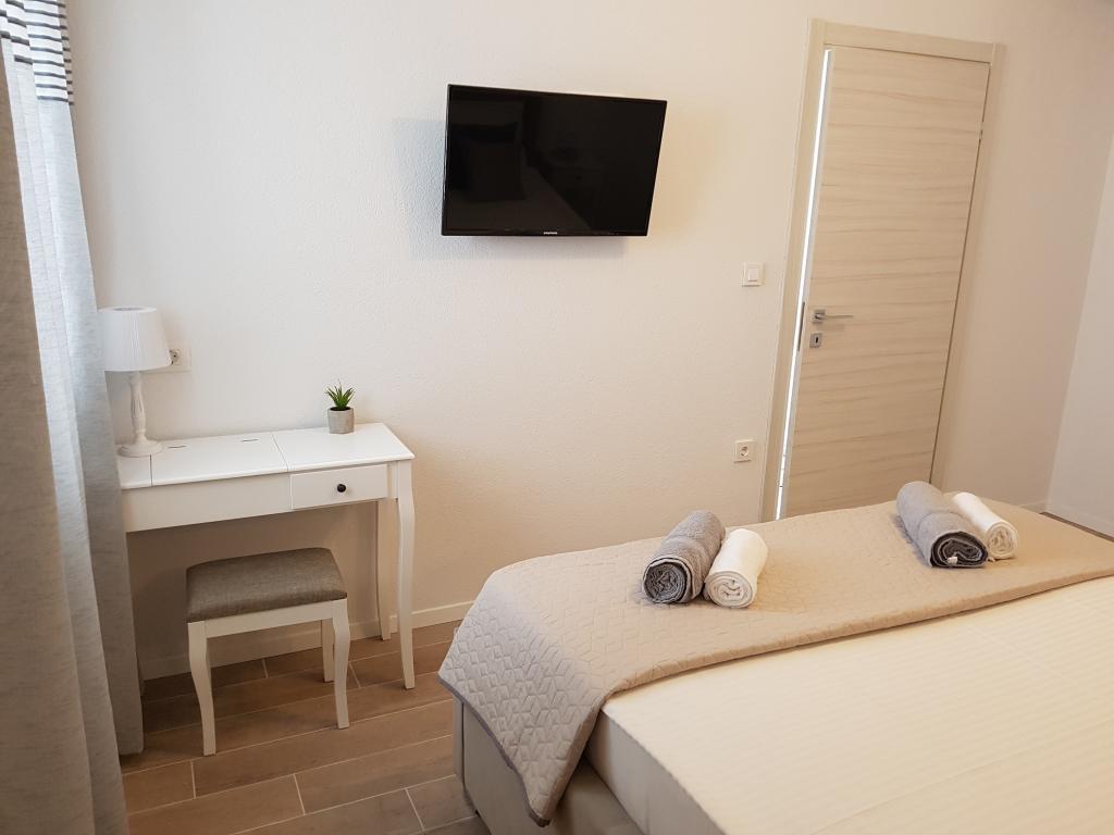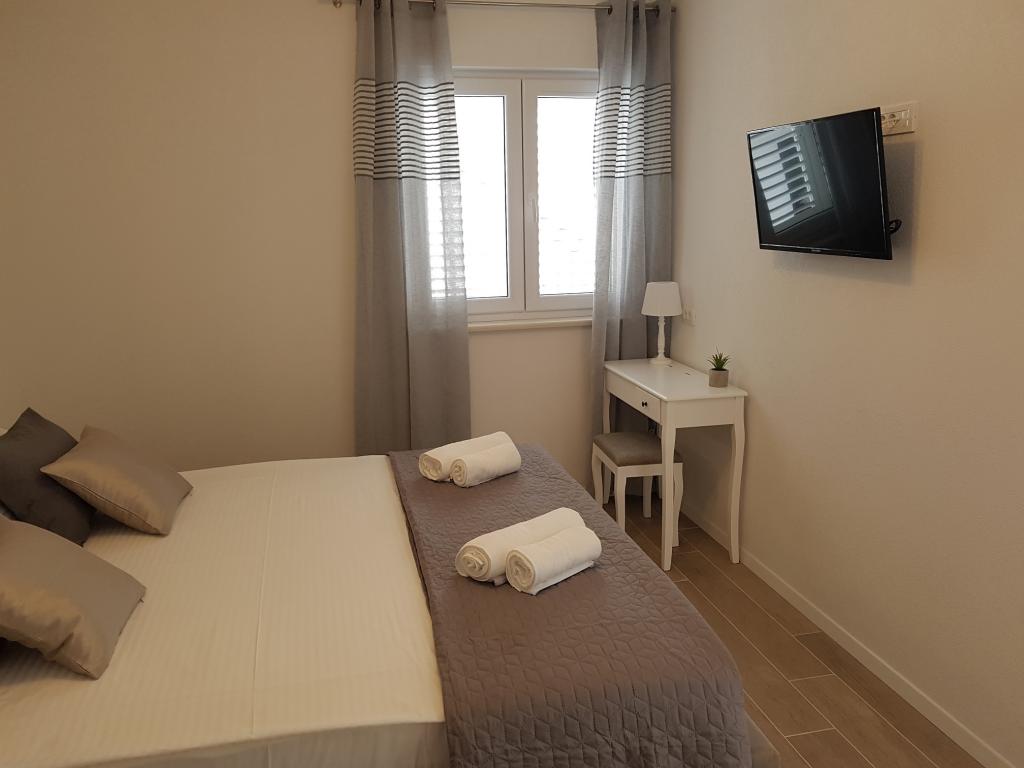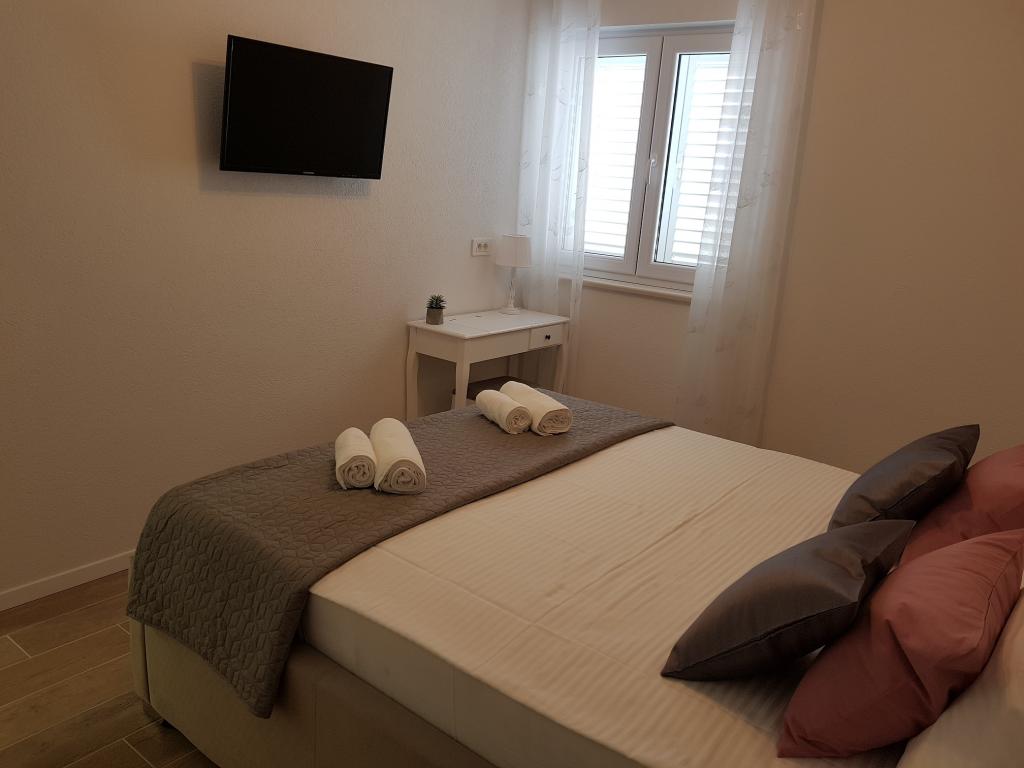 Die neu eingerichteten Apartments La Vista in einem ruhigen Teil von Mimica, bekannt für ihre schönen Kieselstrände, sind die richtige Wahl für Familien mit Kindern, Jugendliche und für alle, die einen erholsamen Urlaub verbringen möchten. Jede Unterkunftseinheit ist komplett ausgestattet und bietet Blick auf das Meer und die Inseln Brac und Hvar. Die komfortablen Apartments von 60 m² sind klimatisiert und verfügen über einen Smart-TV mit Satellitenwohnung, WLAN und einen privaten Parkplatz. Wir wünschen Ihnen einen unvergesslichen Urlaub und wissen, dass Sie immer an erster Stelle stehen.