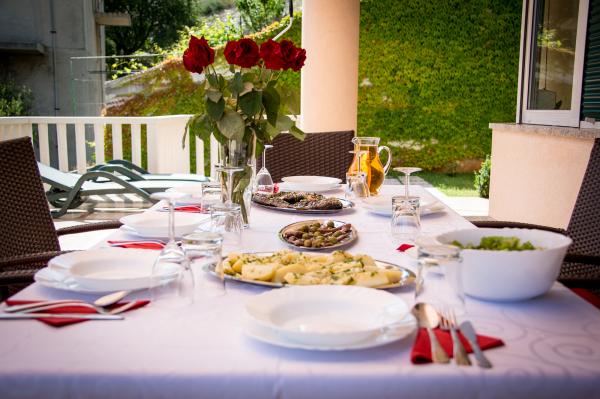 Kurtaxe ist im Preis inbegriffen.Im Preis enthalten sind ein Begrüßungsgetränk, und ohne Aufpreis Sie Wi-Fi, Klimaanlage, SAT-TV, gemeinsame Waschmaschine und Bügelbrett verwenden können. Im Dorf gibt es eine Möglichkeit, einen Jetski und Speedboat mit den organisierten Exkursionen und Ausflüge mieten - Fisch-Picknick. Außerdem hat der Ort zwei große Strände mit verschiedenen Einrichtungen (Bars, Restaurants, Eis, ...) und mehrere kleine Strände, die innerhalb von 2 Minuten zu Fuß befinden. Die alte Straße durch die Stadt dient als Naherholungsgebiet und einer Panorama-Tour. Alle weiteren Inhalte und interessante Dinge, die Sie zum nahegelegenen Omis und Makarska gehen.