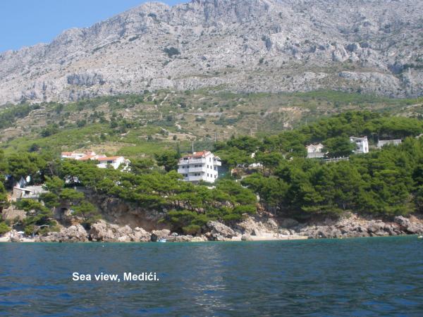 Die Apartments befinden sich in wunderschöner, ruhiger Lage mit nahe gelegenen grünen Bäumen und herrlichem Meerblick von den Balkonen. Es gibt einen privaten, schönen Strand etwa 2 Gehminuten vom Haus entfernt, oder Sie können den Hauptstrand von Medici mit zwei Bars besuchen. Die Apartments befinden sich in geringer Entfernung vom Lebensmittelgeschäft (7 Gehminuten) und auch von einigen Restaurants (im Nachahmen ca. 10 Gehminuten). Wenn Sie mit dem Auto dort sind, können Sie auch einige nahe gelegene Orte besuchen, die oft von Touristen besucht werden (Omiš, Brela, Split, Makarska usw.). Das Appartement war sauber mit einem wirklich schönen Interieur. Es gibt einen gemeinsamen Grill für alle Gäste (neben dem Appartementhaus). Die Besitzer sind freundliche und ständig lächelnde Menschen und sie sind immer bereit zu helfen, wenn Sie etwas brauchen. Ich würde diese Apartments uneingeschränkt Leuten empfehlen, die keine überfüllten Strände und abendlichen intensiven Lärm mögen, weil es wirklich Ruhe und Frieden gibt. Wir haben unseren Urlaub dort wirklich genossen und hoffen alle, dass wir eines Tages wiederkommen.