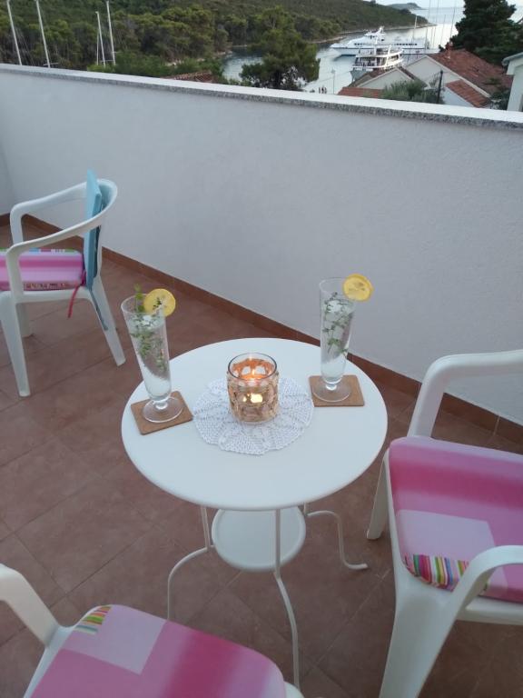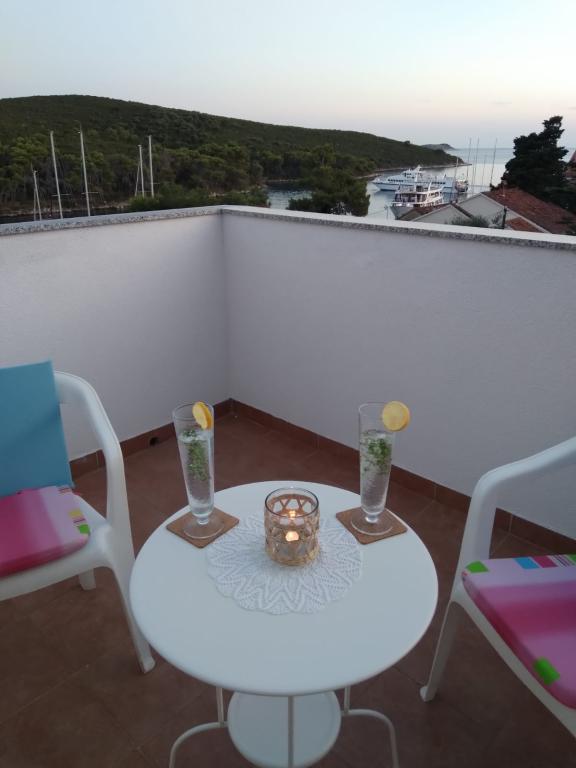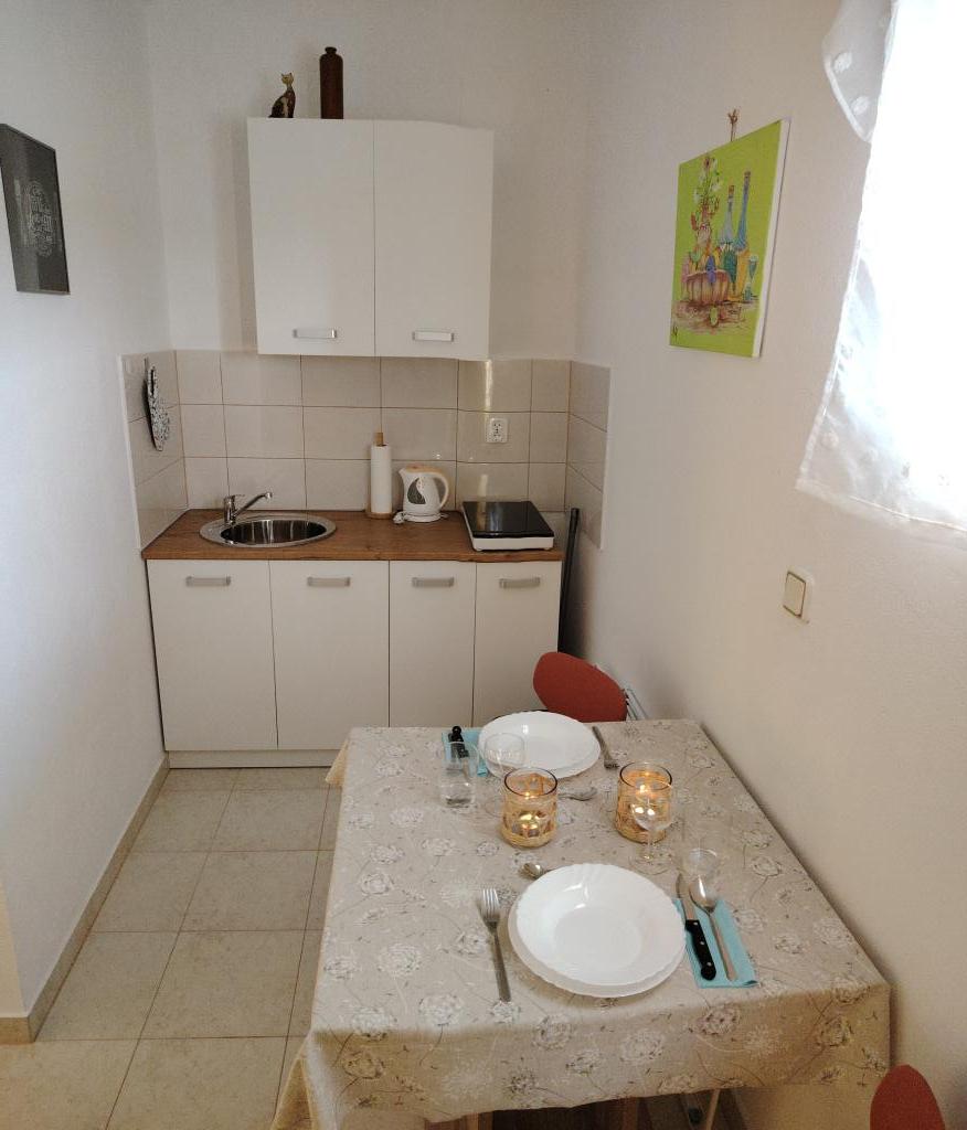 Die Studio-Apartments Bonaca befinden sich in unmittelbarer Nähe des Hafens, in zweiter Reihe zum Meer, in einer ruhigen Gegend mit Meerblick. Die Apartments sind ideal für Paare oder Freunde. Beide Wohnungen verfügen über eine gemeinsame Terrasse. Die Apartments sind klimatisiert und verfügen über kostenloses WLAN. Die Apartments liegen 2 Gehminuten vom Hafen entfernt. In der Nähe gibt es eine Kaffeebar, 2 Restaurants und eine Pizzeria sowie einen kleinen Kiosk mit Obst und Gemüse. Ins Ortszentrum sowie zum Strand sind es 10 Gehminuten. Jedes Apartment bietet Platz für 2 Personen. Nicht für Kleinkinder geeignet. Wir akzeptieren keine Haustiere. Die Mindestaufenthaltsdauer beträgt 7 Tage.