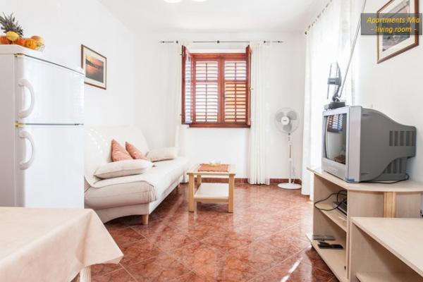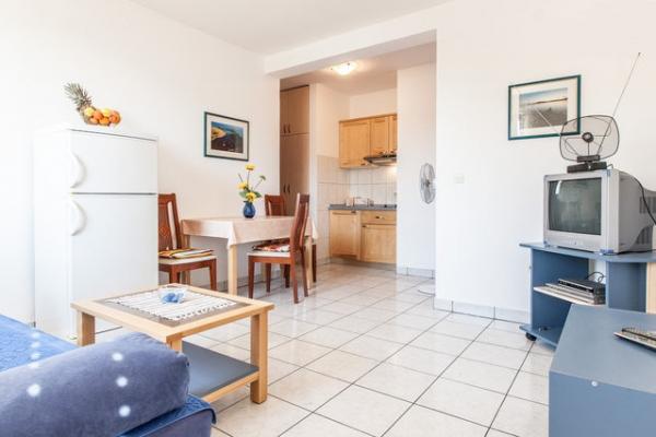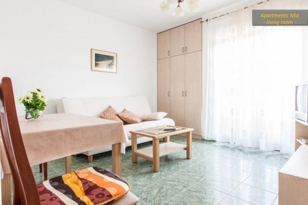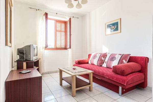 Schöne möblierte Wohnungen, 2 2 Personen, 40m ², 50 m vom Meer, Zimmer, Klimaanlage, ein Badezimmer und eine Küche, ein Wohnzimmer, mikrovalalna Backofen, Sat-TV, Balkon, Grill, Parkplatz.