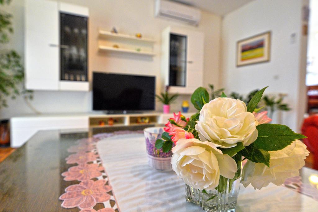 Für Ihren perfekten Urlaub bieten wir Ihnen sechs wunderschön eingerichtete und voll ausgestattete Apartments (Klimaanlage, Wi-Fi, Sat-TV kostenlos) mit einem / zwei / drei Schlafzimmern, Küche, Bad, Wohnzimmer und natürlich der unvermeidlichen großen Terrasse. bietet einen wunderschönen Blick auf das Meer und den Murter-Archipel. Die Anlage liegt in einem ruhigen Ortsteil, verkehrsberuhigt in einer Sackgasse und ist somit ideal für Ruhesuchende und Familien mit Kindern. Für Grillfreunde steht ein großer Außengrill zur Verfügung. Vor dem Haus befindet sich ein überdachter und gesicherter Parkplatz für zehn Autos. Innerhalb von zehn Minuten zu Fuß erreichen Sie den schönen Sandstrand Slanica, die Entfernung vom Zentrum beträgt etwa 600 m, wo es Geschäfte, Restaurants, Cafés und ein intensives Sommerleben voller Veranstaltungen gibt. Unsere Appartements begehren wegen der schönen Aussicht, der attraktiven Lage und des Komforts, aber auch wegen unserer Offenheit und Gastfreundschaft. Herzlich willkommen!