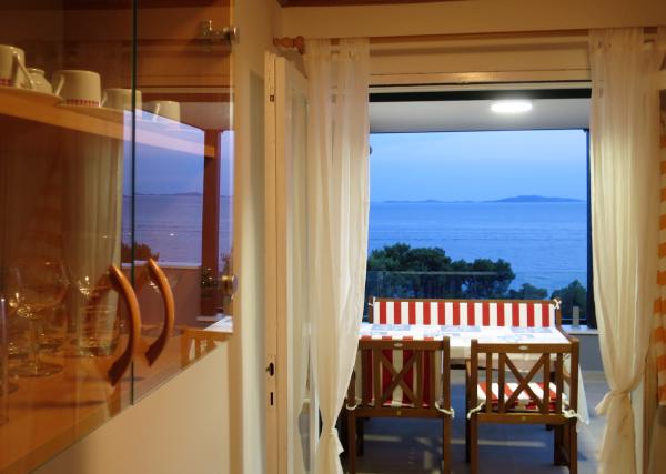 Das Haus der Familie Janči befindet sich an einem ruhigen Ort in üppigem Grün ("Murter Bel Air"), nur 40 m vom Strand entfernt. Es bietet zwei moderne Apartments (Typ 2 2) von 38 m2 und eine Terrasse von 14 m2 für einen komfortablen Aufenthalt für bis zu 4 Personen. Die Terrasse bietet einen schönen Blick auf das Murtermeer und den Kornati-Archipel. Den Gästen steht eine Innenhofterrasse mit Grill und die Möglichkeit zur Verfügung, an einer Boje vor dem Haus festzumachen. Fahrräder können auch verwendet werden, um in den Laden zu fahren und ähnliche kürzere Entfernungen.