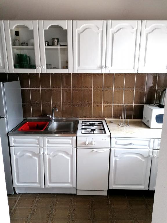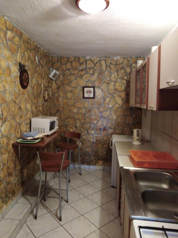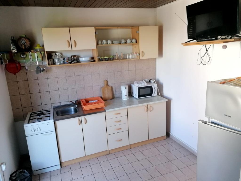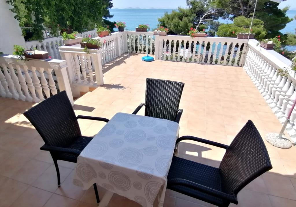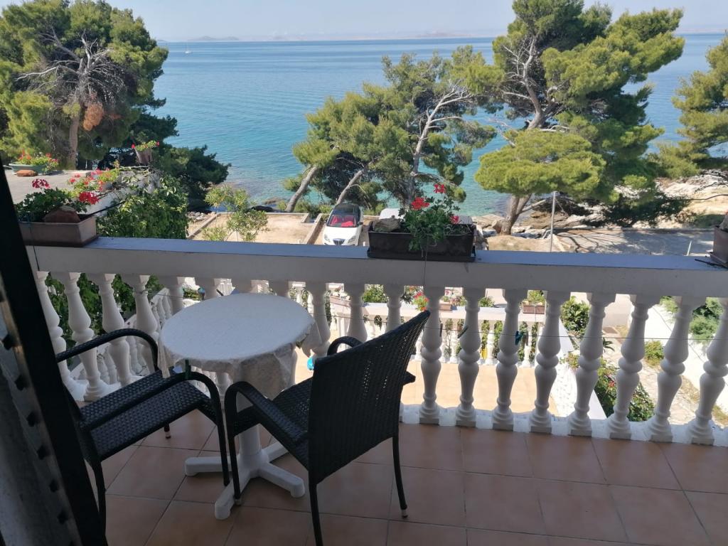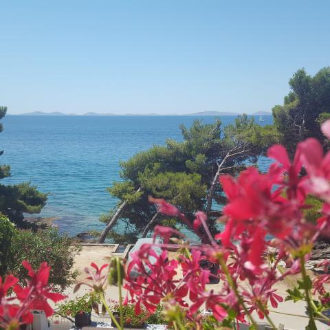 Die Wohnung liegt in unmittelbarer Nähe zum Meer. Es verfügt über zwei Terrassen mit herrlichem Blick auf das Meer und die Kornati. Die Ausstattung der Wohnung ist veraltet, aber für anspruchslose Gäste ausreichend. Großartige Lage übertrifft Einrichtungen. In unmittelbarer Nähe befindet sich ein schöner kleiner Strand mit einfachem Zugang zum Meer. Morgens liegt ein Schatten am Strand. Auch der berühmte Strand Slanica liegt ganz in der Nähe der Unterkunft.