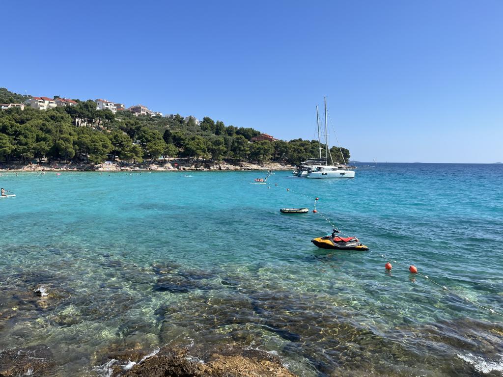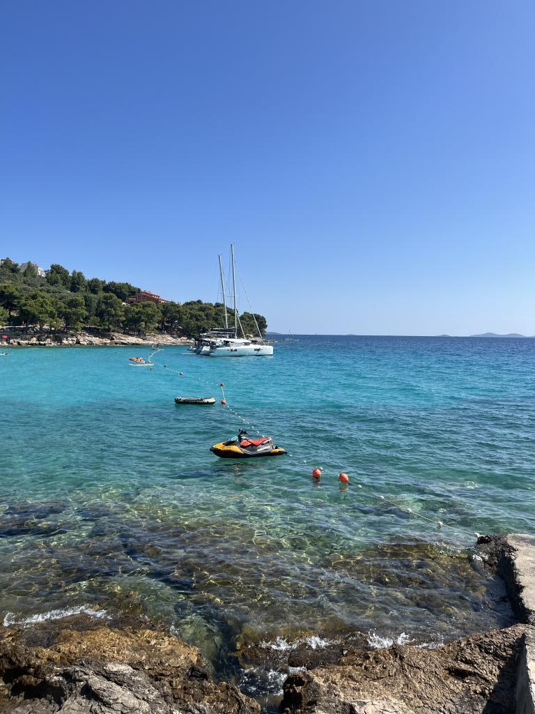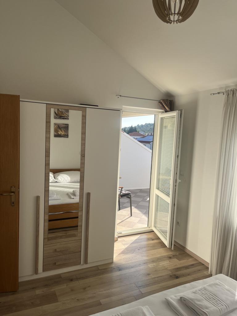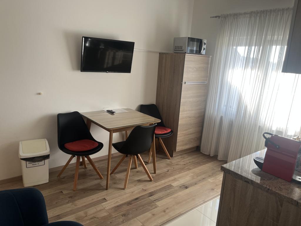 Zentrum von Murter – eine kleine Stadt für einen tollen Urlaub. Willkommen in den Blue Pearl Apartments in außergewöhnlicher Lage im Zentrum von Murter! Die neuen Blue Pearl Apartments befinden sich in ruhiger Lage im Zentrum von Murter und 10 Minuten von den schönsten Stränden der Insel Murter entfernt. Die Lage und die atemberaubende Aussicht von den Apartments sind die perfekte Wahl für alle, die einen erholsamen und ruhigen Urlaub an den nahegelegenen Stränden der Insel Murter verbringen möchten. Die Apartments bieten eine angenehme Atmosphäre und eine Terrasse zum Entspannen und Genießen der Aussicht. Die Preise verstehen sich als Miete für 2 Personen und beinhalten Kurtaxe, Parkplatz und kostenloses WLAN. Das Apartment verfügt über ein Schlafzimmer mit Doppelbett und eine Terrasse mit Sitzecke, ein Badezimmer, ein Wohnzimmer mit Küche und ein Esszimmer. Das Apartment verfügt über Bettwäsche, Handtücher, Geschirr, eine Mikrowelle und eine Kaffeemaschine. Die Gäste können den überdachten Außengrill in einem malerischen Steinhaus nutzen. Das Apartment verfügt über ein Klappbett für die Kleinen.