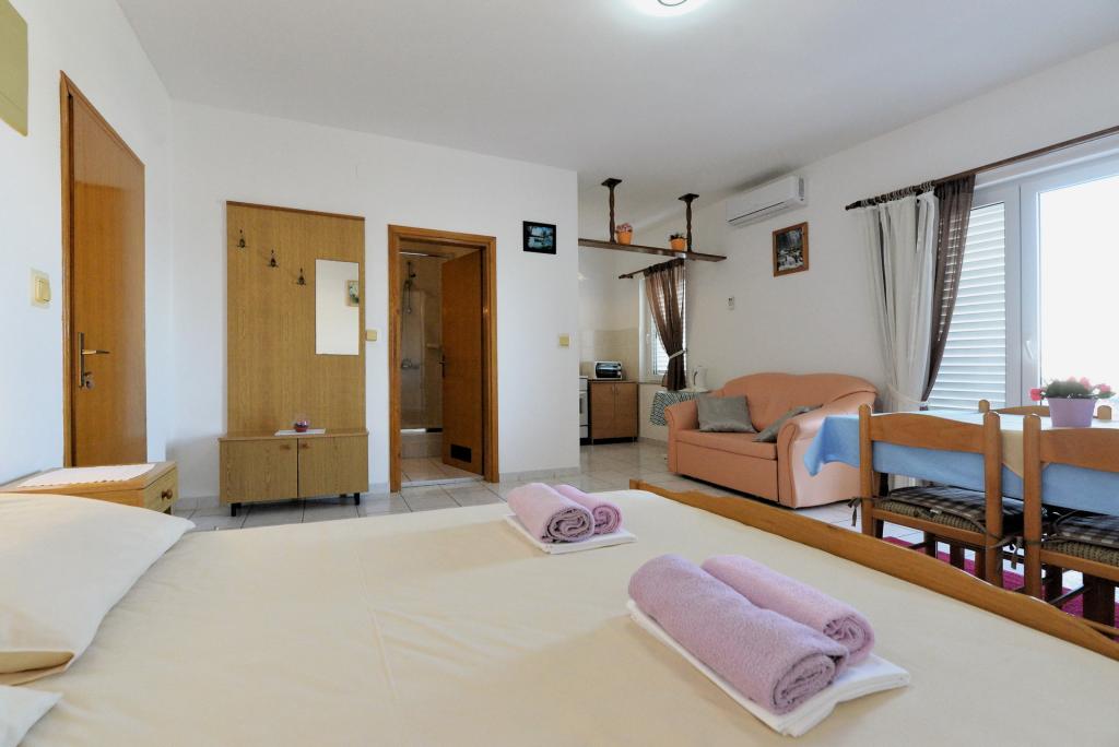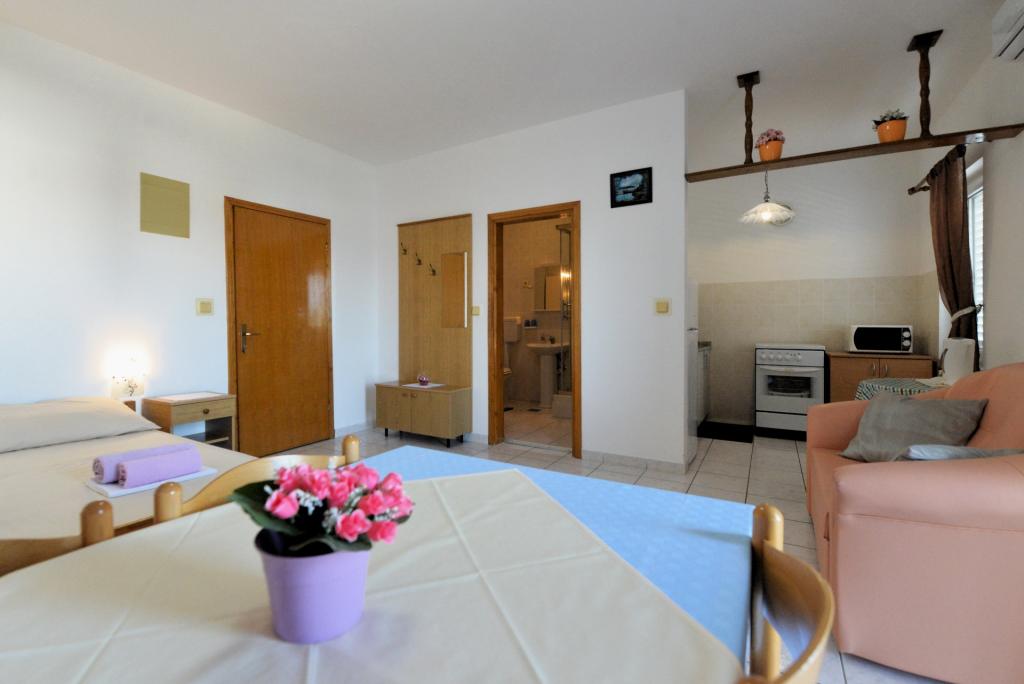 Die Wohnungen sind in einem ruhigen Teil von Murter für alle Touristen entfernt. Nahe am Strand, Geschäfte, eine Apotheke zu Fuß in 5 Minuten.