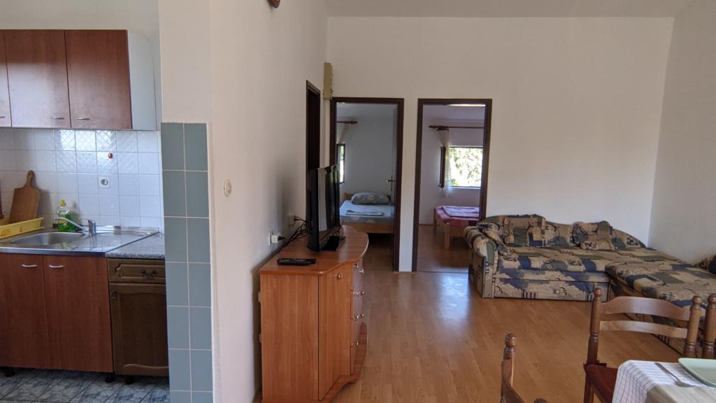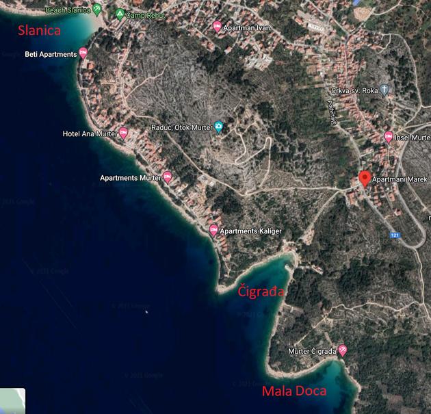 Ein schönes, aber schlichtes und sauberes Apartment mit hervorragender Lage in der Nähe des Strandes Sigrada (10 Minuten) und mehrerer ausgezeichneter Restaurants, die zu Fuß durch die herrliche Altstadt von Murter erreichbar sind. Wenn Sie eine Unterkunft abseits des geschäftigen Nachtlebens bevorzugen, aber in Gehweite zu Lebensmittelgeschäften, Restaurants und mehreren Stränden und kleinen Städten, ist dies eine ausgezeichnete Wahl. Wir waren eine Woche mit unseren beiden Teenagern dort und sie genossen besonders den Strand und unser geselliges Beisammensein am späten Nachmittag/frühen Abend auf der großen Veranda mit Meerblick. Eines Abends lud uns der Besitzer Ivan zu einem sehr schönen Abendessen ein, zu dem er ein spezielles Risotto auf der Basis von Tintenfisch kochte. Wir können die Marek Apartments wirklich empfehlen und freuen uns darauf, wiederzukommen!