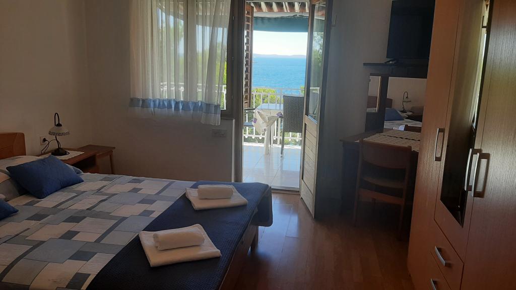 Sehr höflicher und netter Besitzer. Saubere, geräumige Wohnung mit einer sehr großen und schattigen Terrasse mit Blick auf das Meer. Voll ausgestattete Küche und Zimmer, schattige Parkplätze für Autos. Strände und Konobas ganz in der Nähe. Ein empfehlenswerter Ort für einen ruhigen Urlaub.