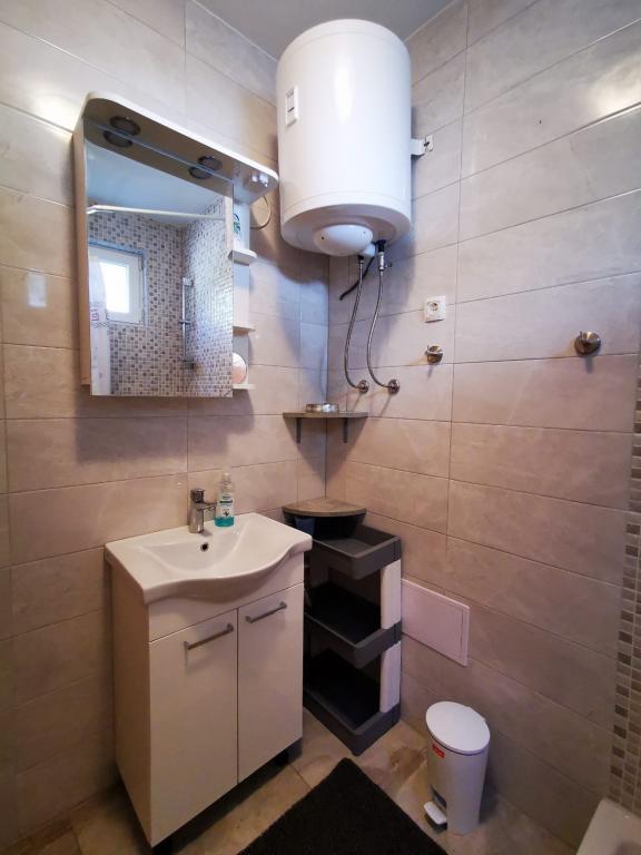 Komplett und modern eingerichtete Apartments in einer ruhigen Gegend der Insel Murter, 2 Reihen zum Meer. Die Unterkunft befindet sich 5 Gehminuten vom Hauptstrand von Slanica und 20 Gehminuten vom Zentrum entfernt. Unterhalb des Hauses befindet sich ein Felsstrand, aber auch eine Bucht mit kleinen Kieselsteinen für Kinder. Von der Terrasse der Unterkunft aus können Sie den Nationalpark Kornati sehen.