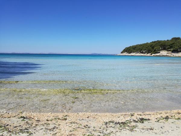 Der schönste Familienurlaub besteht darin, in aller Ruhe vom Meeresrauschen geweckt und mit Blick auf den Sonnenuntergang über dem offenen Meer und den Kornaten (einem Nationalpark mit 150 kleinen Inseln) eingeschlafen zu werden! Das Familienhaus Juraga ermöglicht Ihnen genau das. Die unmittelbare Nähe zum türkisfarbenen Meer (20 m), dem Sandstrand Slanica (100 m), den Kiesstränden Čigrađe und Podvrška sowie den romantischen Steinstränden, wo Sie die ganze Kraft von Stein, Sonne und Meer genießen können, ist ein weiterer Grund, warum Sie gerne in unsere Apartments mit ungezwungenem Komfort zurückkehren möchten. Jedes Apartment verfügt über ein Schlafzimmer, eine Küche mit Wohnzimmer, ein Badezimmer mit Dusche und zwei Balkone. Sie sind mit TV und WLAN ausgestattet. Das Haus kann auch komplett gemietet werden. Im großen Garten mit duftenden Kiefern können Sie mediterrane Früchte (Feigen, Trauben) pflücken und sich erfrischen. Sie erreichen uns bequem mit dem Auto und es stehen Parkplätze für Ihre Autos und Fahrräder zur Verfügung. Wir freuen uns auf Ihr Kommen!