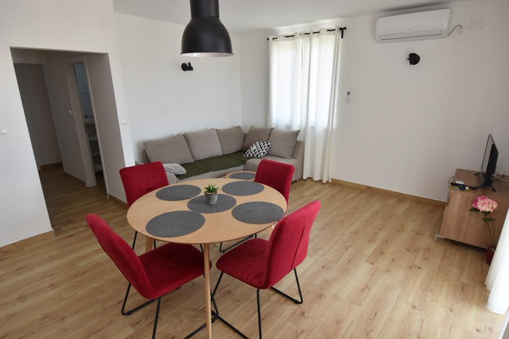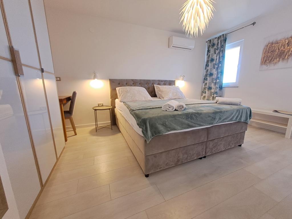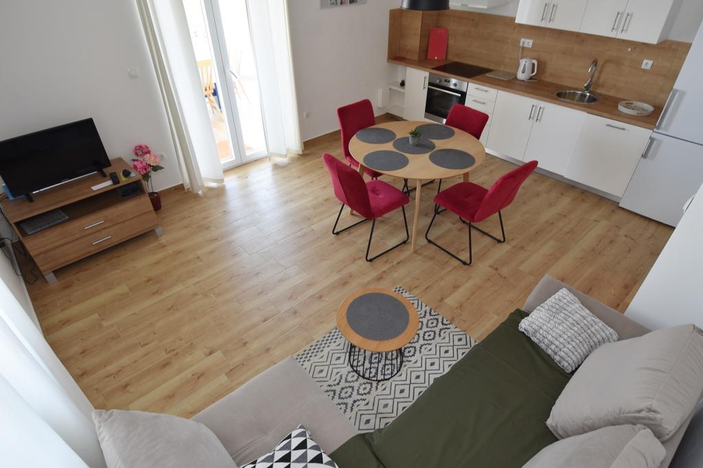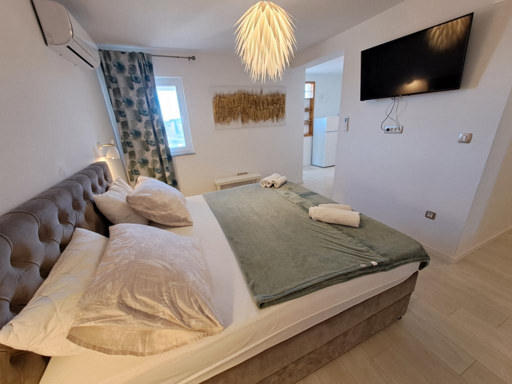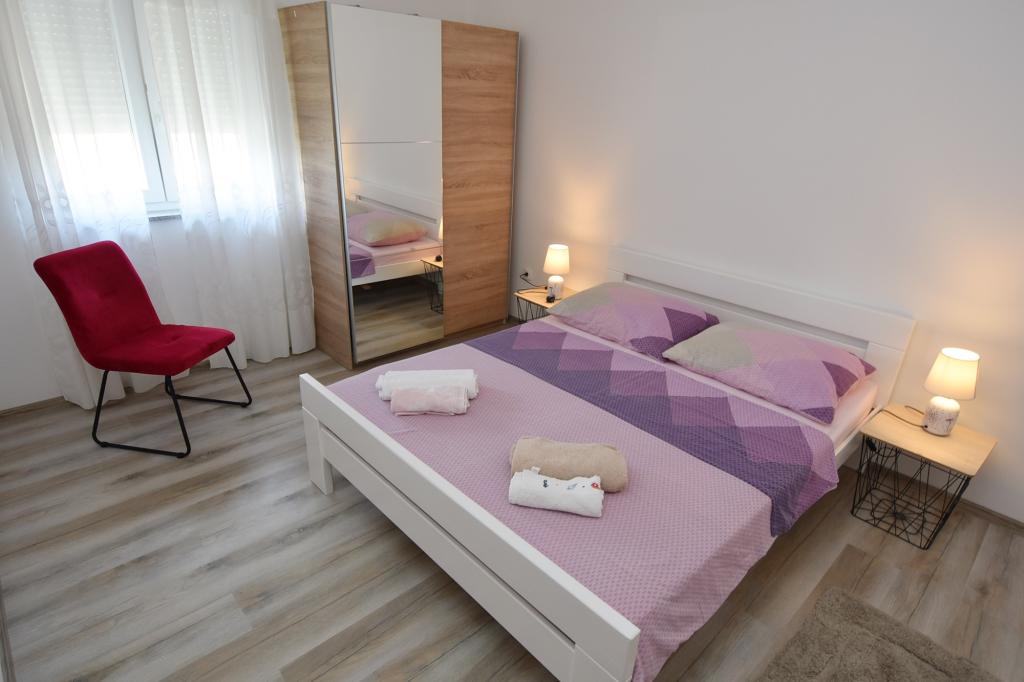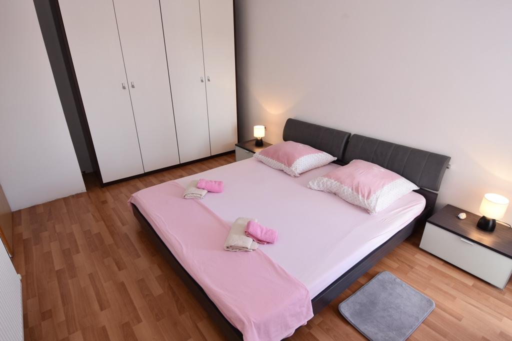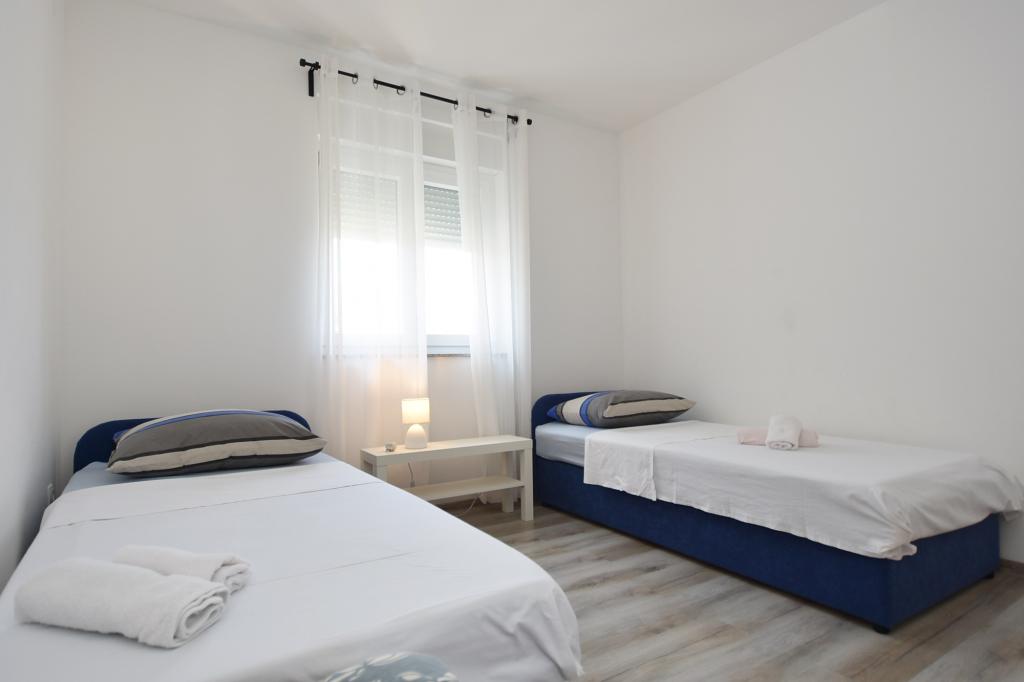 Neu eingerichtete Apartments in ruhiger Lage, nur 5 Gehminuten vom Sandstrand „Slanica“ und 10 Gehminuten vom Zentrum entfernt. Die Apartments bieten Meerblick.