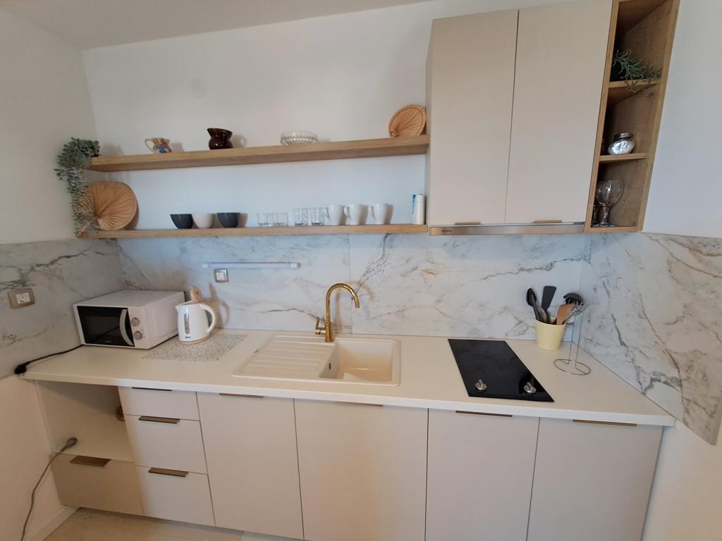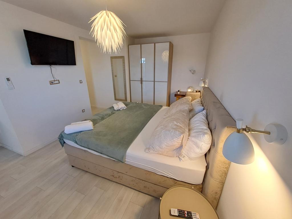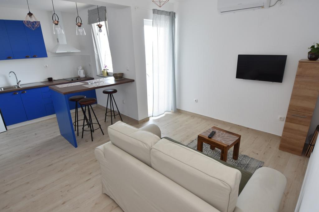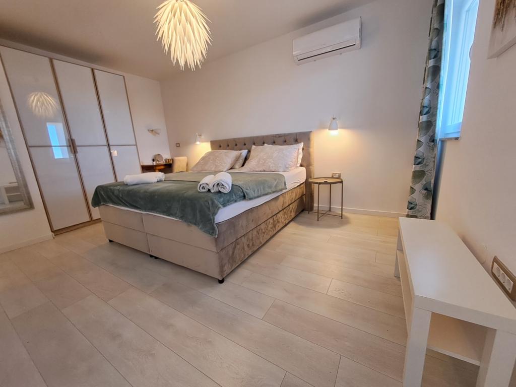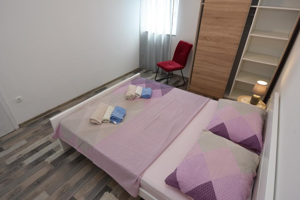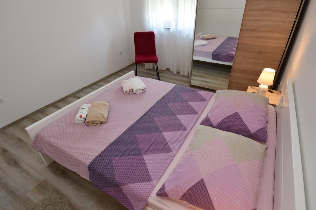 Neu eingerichtete Apartments in ruhiger Lage, nur 5 Gehminuten vom Sandstrand „Slanica“ und 10 Gehminuten vom Zentrum entfernt. Die Apartments bieten Meerblick.