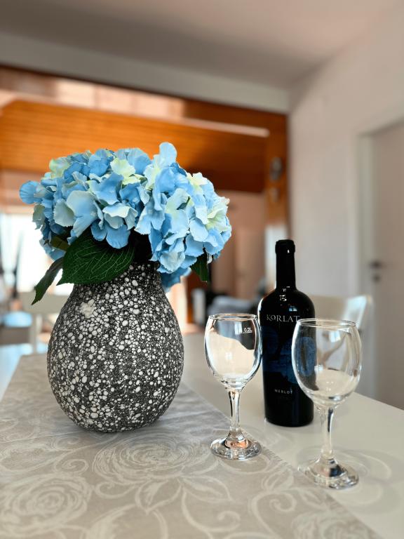Fabelhafter Blick auf die Kornati-Inseln, besonders die Sonnenuntergänge sind fantastisch, sauberes, gut ausgestattetes Apartment, 5 Gehminuten vom Strand von Slanica entfernt. Der Gastgeber war sehr nett und hilfsbereit. Ich kann es jedem von ganzem Herzen empfehlen.
