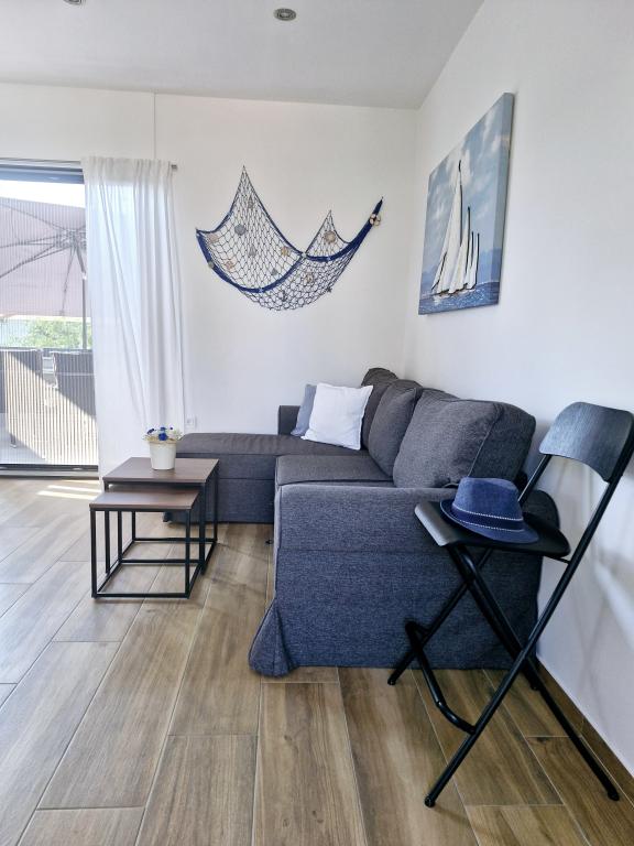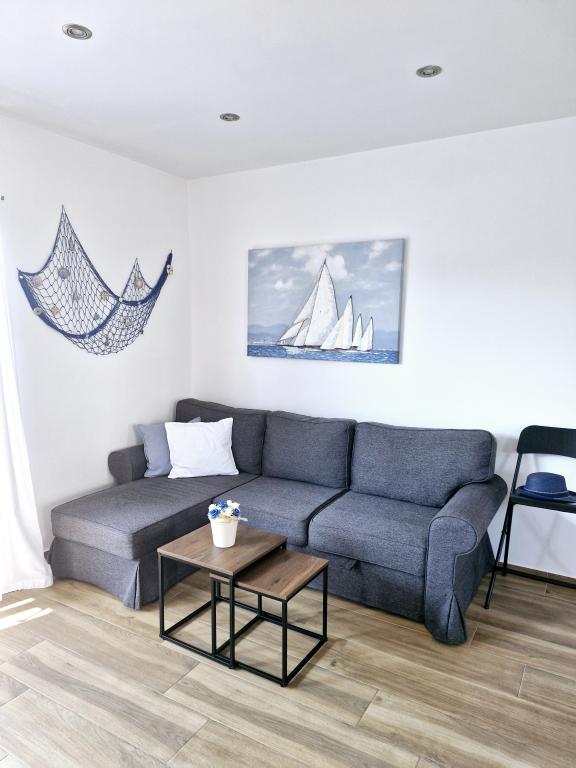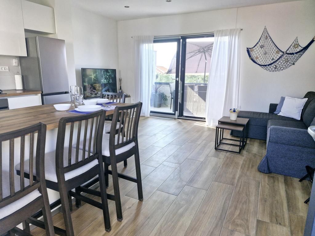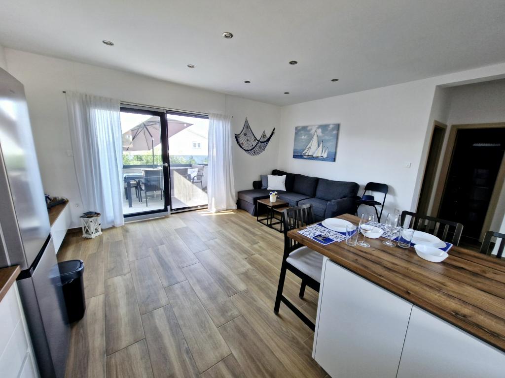 Die Wohnung befindet sich auf der Insel Murter in der Stadt Murter. Es ist durch eine Brücke mit dem Festland verbunden, die die Verkehrskommunikation vollständig gewährleistet. Die Wohnung befindet sich in einem neu renovierten Haus und hat eine Fläche von 50 m2. Die Wohnung bietet Platz für bis zu 3 Personen (2+1). Es befindet sich im ersten Stock eines Hauses in einer ruhigen Straße und bietet somit Ruhe und Diskretion für einen angenehmen Urlaub. Es besteht aus einer Küche/Esszimmer/Wohnzimmer, einem Schlafzimmer, einem Badezimmer und einem Balkon mit Meerblick. Im Schlafzimmer gibt es ein Doppelbett (Maße 160x200cm) und im Wohnzimmer gibt es ein bequemes Schlafsofa. Es ist mit allen Haushaltsgeräten, 4k-Android- und Satellitenfernsehen, Internet (Wi-Fi), Klimaanlage und einem videoüberwachten Parkplatz ausgestattet. Um Ihre Wäsche während Ihres Aufenthalts in unserem Apartment sauber zu halten, steht Ihnen eine Waschmaschine zur Verfügung. Das Gebäude ist nicht für Raucher geeignet, verfügt aber über einen Balkon, auf dem das Rauchen gestattet ist. Wir legen großen Wert auf die Instandhaltung der Wohnung.