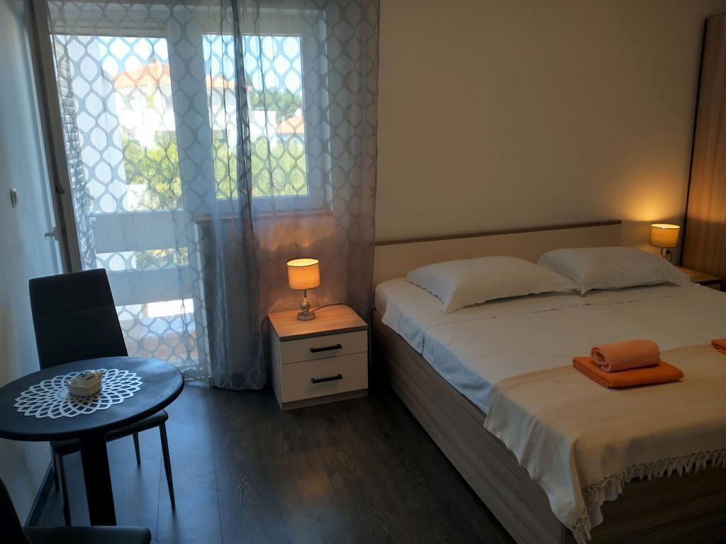 Das Haus der Familie Ježina liegt in Murter, 300 m vom Strand entfernt. Den Gästen steht eine 100m2 große Wohnung mit Terrasse und Balkon zur Verfügung. Drei Doppelzimmer mit zwei Zustellbetten, Küche, Esszimmer, Wohnzimmer, Badezimmer, WC, große Terrasse im natürlichen Schatten und Balkone mit Blick ins Grüne, auf die Nachbarschaft und das Meer in der Ferne, geeignet für Familien, Freunde oder Gruppen von 6 bis 8 Mitgliedern. Der große Garten und die Entfernung von der Straße bieten Sicherheit für Kinder, während der mobile Grill und der Schatten der Weinreben und Olivenbäume den Erwachsenen Freude bereiten werden. Nach Absprache kann die Familie Ježina ihren Gästen ihre eigenen Olivenhaine auf den nahegelegenen Inseln vorstellen.