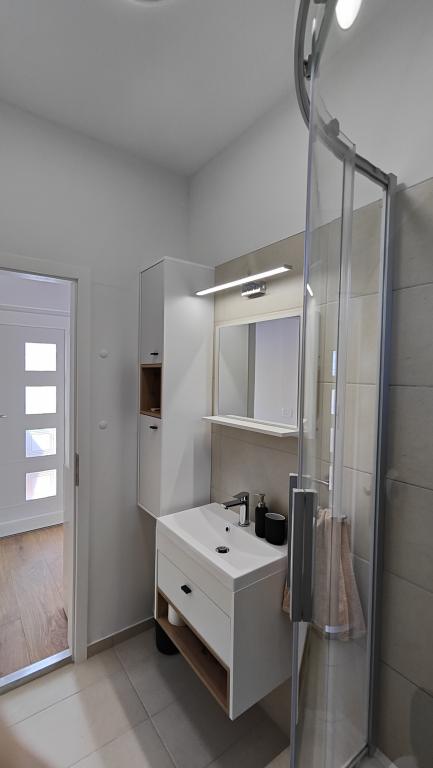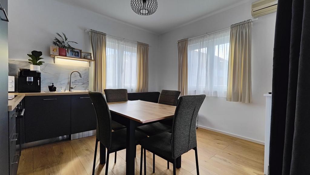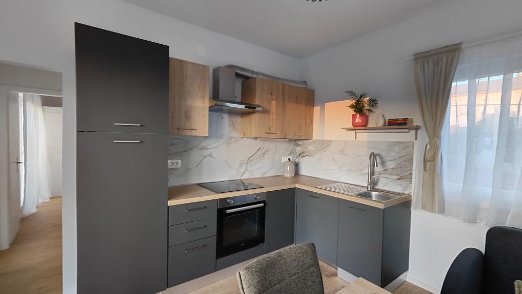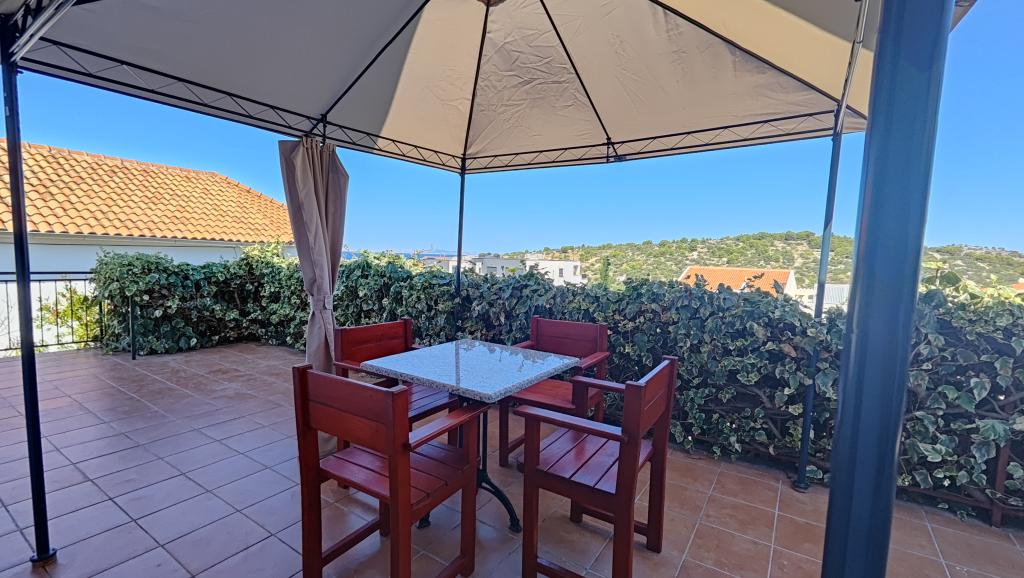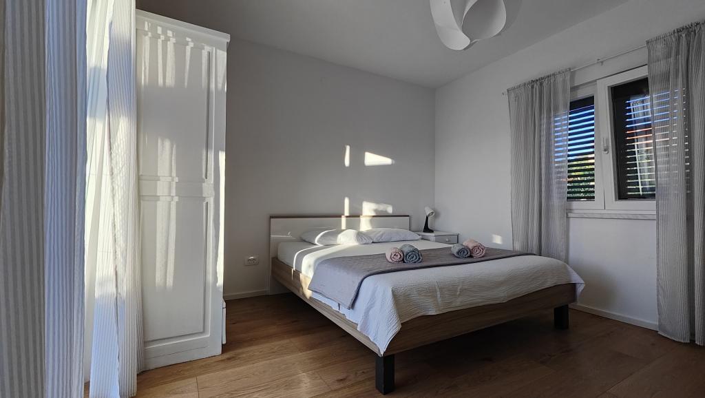 Komplett renovierte Ferienwohnung in ruhiger Lage mit großer Terrasse und Meerblick, nur 300 m vom Sandstrand Slanica entfernt. Zur Ausstattung gehören ein Grillplatz, ein gemütlicher Sitzbereich im Garten sowie ein sicherer Parkplatz. Die Wohnung verfügt über ein separates, geräumiges Schlafzimmer. Die voll ausgestattete Küche bietet Kaffeemaschine, Geschirrspüler, großen Kühlschrank mit Gefrierfach und eine Waschmaschine.