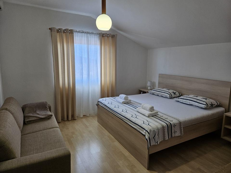 Dieses modern eingerichtete Apartment liegt nur 600 Meter vom Sandstrand Slanica entfernt, einem der schönsten Strände der Region. Das 100 m² große Apartment verfügt über 3 Schlafzimmer, 2 Badezimmer, eine Küche mit Essbereich, eine große Terrasse, Klimaanlage in allen Zimmern, WLAN, TV, Sat-TV, Geschirrspüler, Grill, einen sicheren Parkplatz für 2 Autos, einen Garten und einen Pavillon zum Entspannen. Bettwäsche, Handtücher, Endreinigung und Kurtaxe sind im Preis inbegriffen.