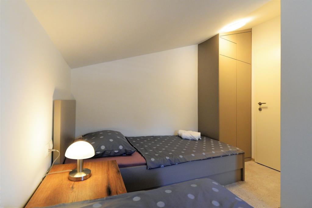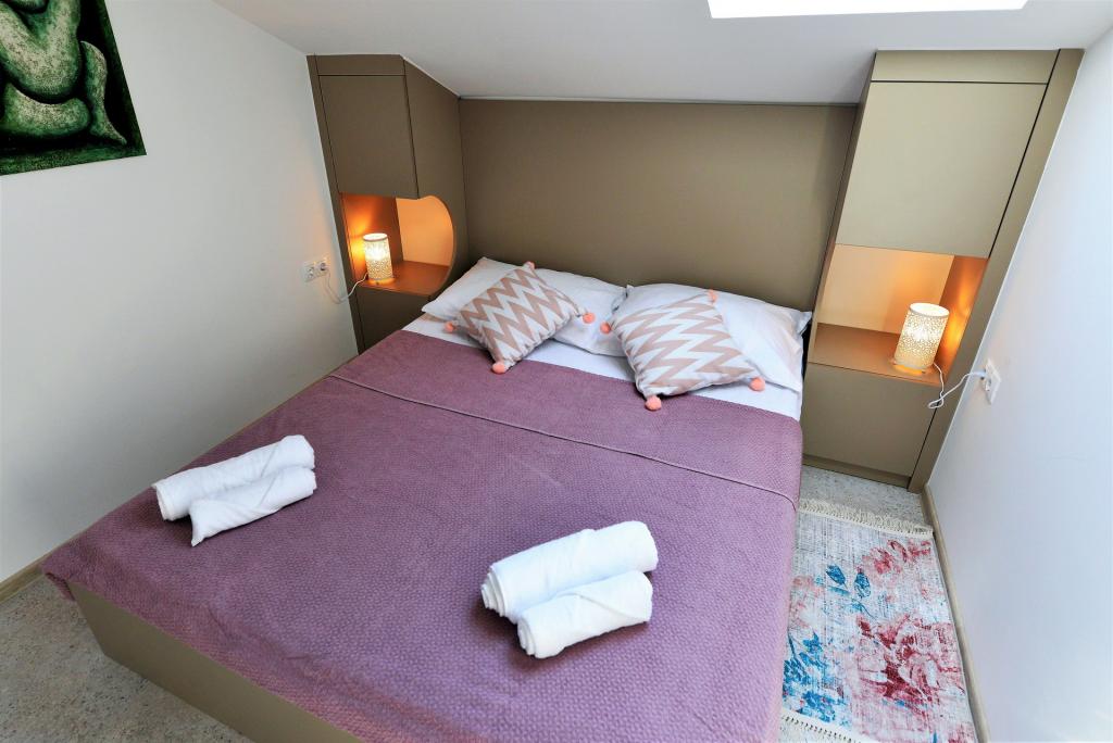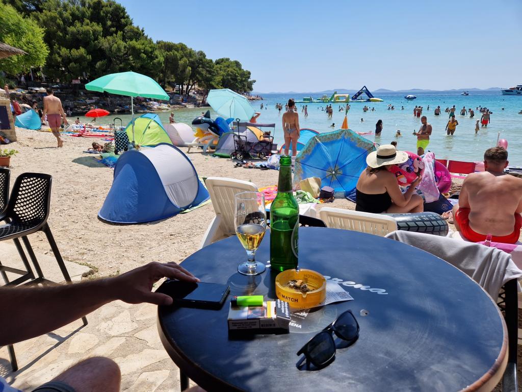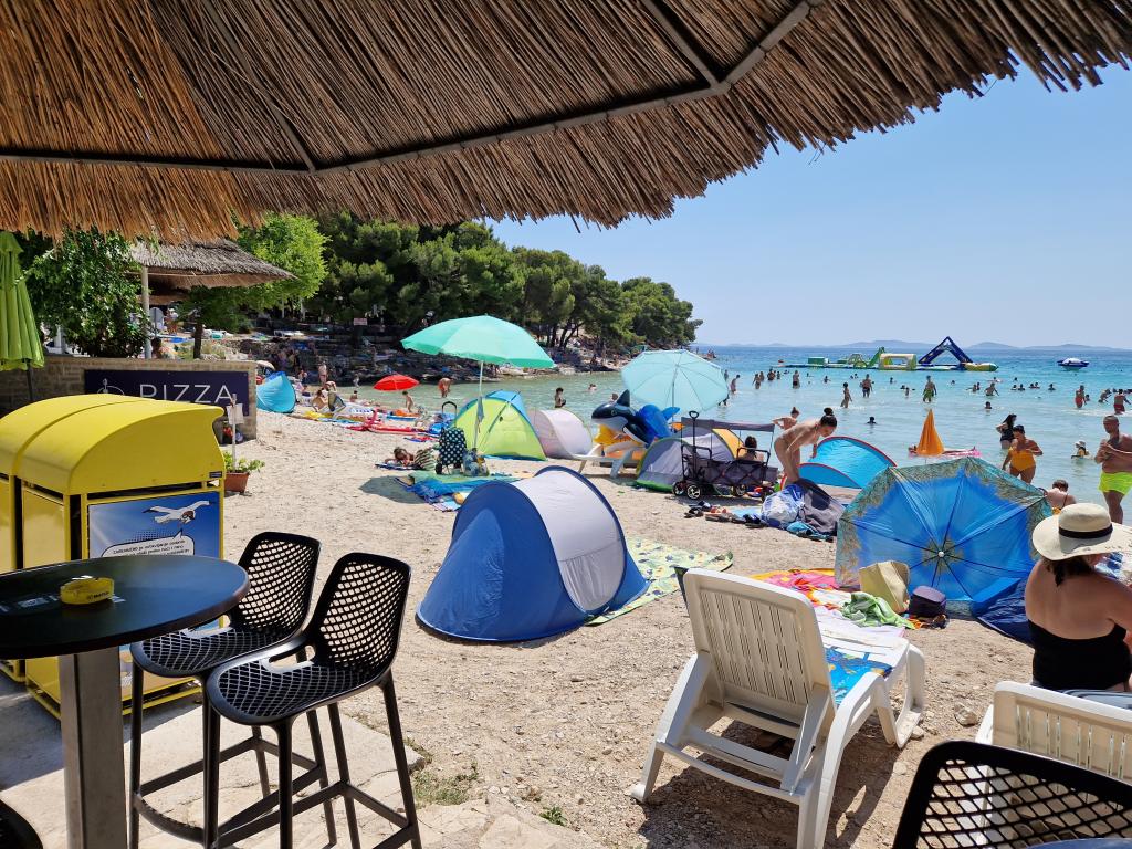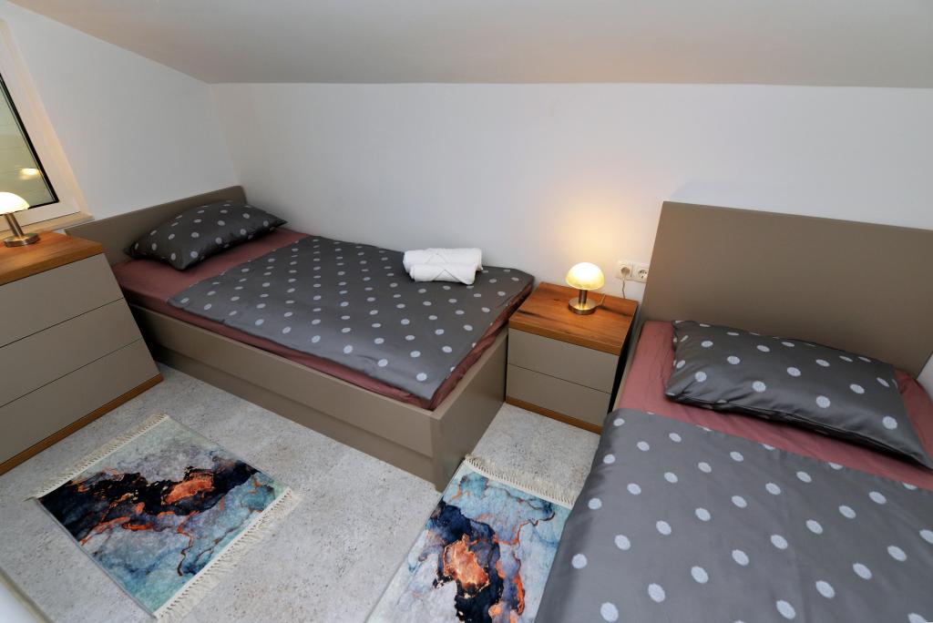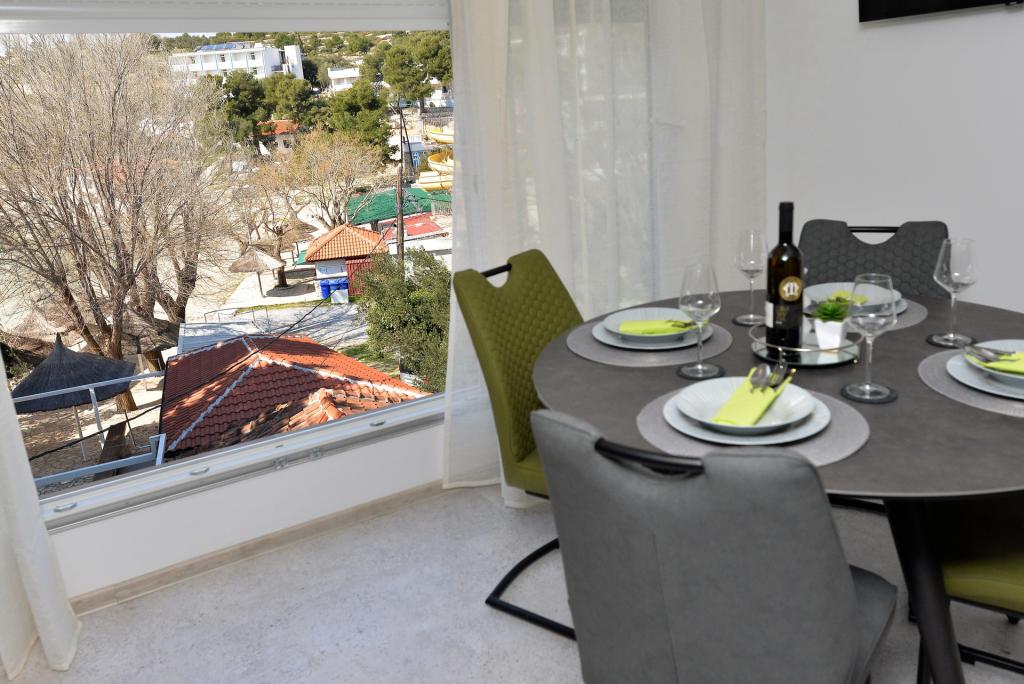 Neu eingerichtete Zweizimmerwohnung von 43,55 m2. Es besteht aus einem Doppelzimmer (zwei Betten à 200 x 90 cm), einem Einzelzimmer (Maße 200 x 160 cm) und einem Schlafsofa im Wohnzimmer. Es ist mit allen Haushaltsgeräten, Android-TV, Internet/WLAN, Klimaanlage und gesicherten Parkplätzen mit Videoüberwachung ausgestattet. Es befindet sich im zweiten Stock eines Wohngebäudes, das in erster Reihe zum Meer, genauer gesagt am Sandstrand von Slanica, liegt. Es besteht aus einem Flur, 2 Schlafzimmern, Bad, Küche/Esszimmer/Wohnzimmer mit Blick auf das Meer und den Kornati-Nationalpark. In der Nähe gibt es ein Geschäft, mehrere gastronomische Einrichtungen, eine große Rutsche, einen Spielplatz und Tennisplätze. Der Strand ist auch für die Kleinen geeignet, da er über einen großen flachen Sandteil verfügt und nur 100 Meter entfernt viele Stellen unter Pinien für einen etwas tieferen Einstieg ins Meer gibt. Es gibt eine Promenade zum Zentrum von Murter. Es ist wichtig zu beachten, dass an diesem Strand keine Late-Night-Musikveranstaltungen stattfinden, sondern ausschließlich Tagesveranstaltungen und Catering-Veranstaltungen.