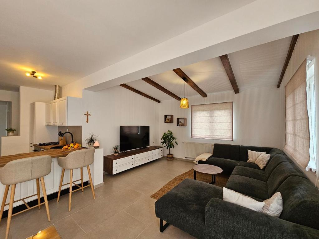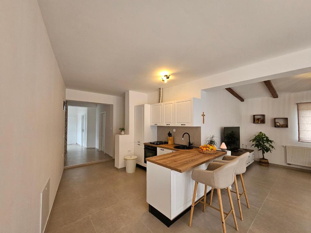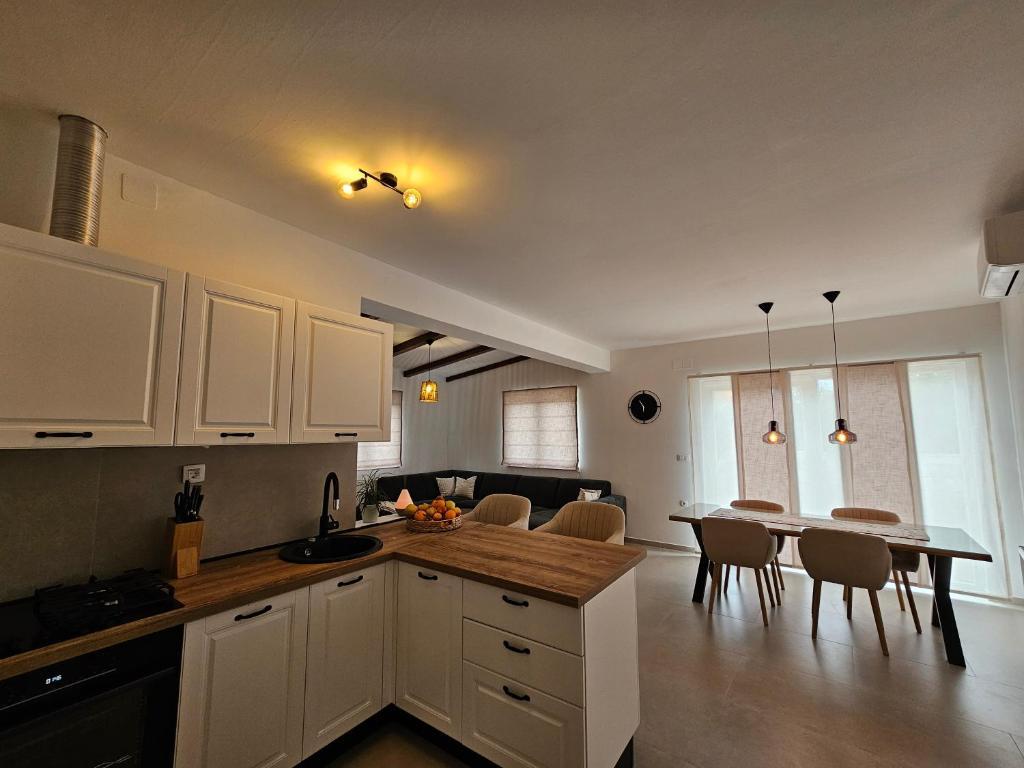 Das Apartment Una befindet sich in Murter, in bester Lage, nur wenige Gehminuten vom Zentrum entfernt. Es liegt in einer ruhigen Straße und ist somit ideal für einen entspannten Urlaub. Restaurants, Geschäfte und alle wichtigen Einrichtungen sind dennoch in unmittelbarer Nähe. Das geräumige Apartment bietet eine voll ausgestattete Küche mit Essbereich, ein Wohnzimmer, zwei komfortable Schlafzimmer und ein modernes Badezimmer. Genießen Sie außerdem die große private Terrasse – perfekt für den Morgenkaffee oder gesellige Abende. Das klimatisierte Apartment verfügt über kostenfreies WLAN, einen Flachbildfernseher und alle notwendigen Haushaltsgeräte für einen längeren oder kürzeren Aufenthalt. Private Parkplätze stehen Ihnen ebenfalls zur Verfügung. Dank der Nähe zu den berühmten Stränden von Murter, dem kristallklaren Meer und der charmanten Altstadt ist das Apartment Una eine ausgezeichnete Wahl für Familien, Freunde und alle, die einen unbeschwerten Urlaub auf Murter verbringen möchten.