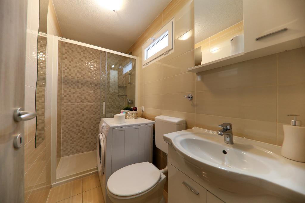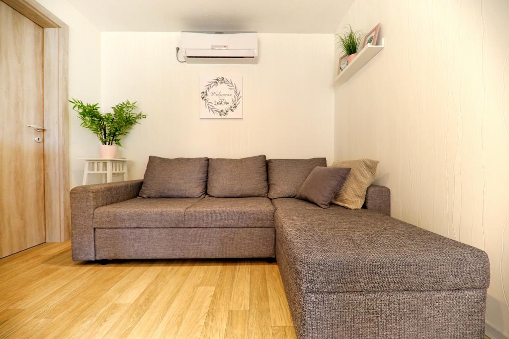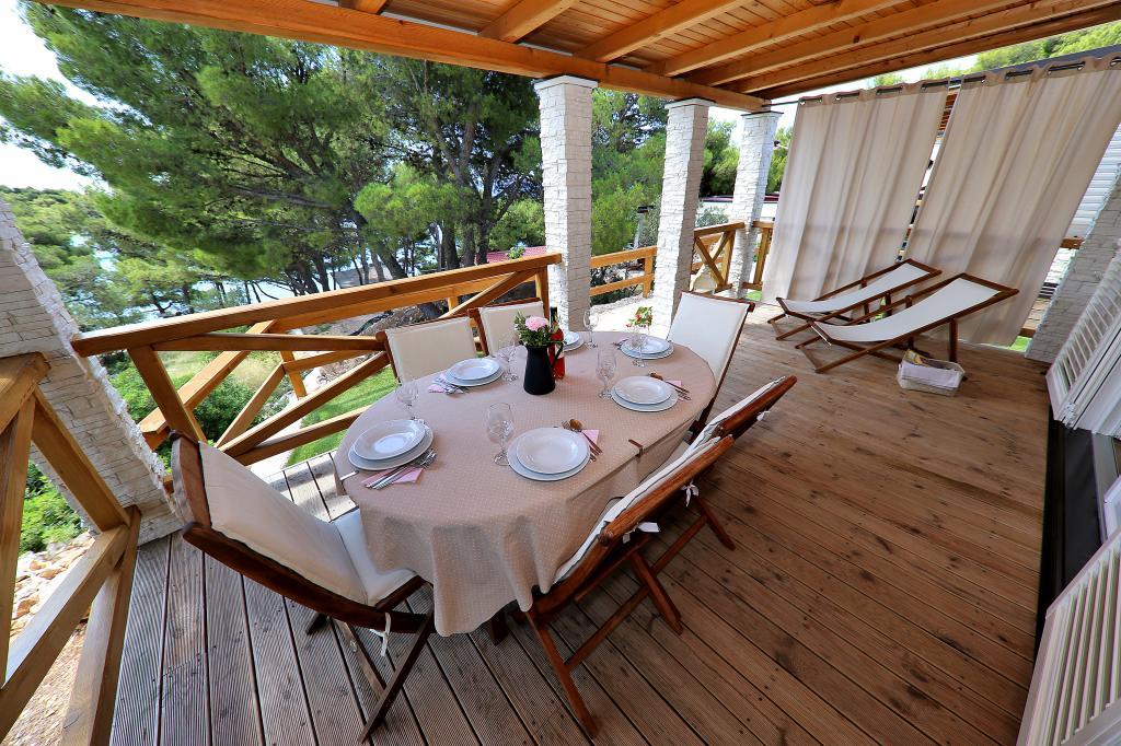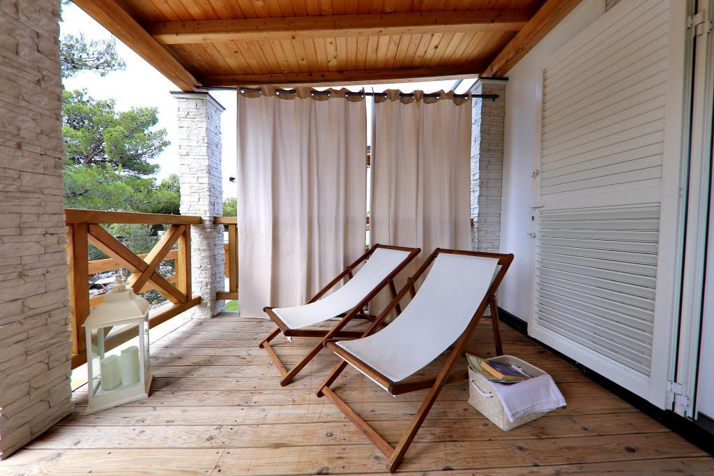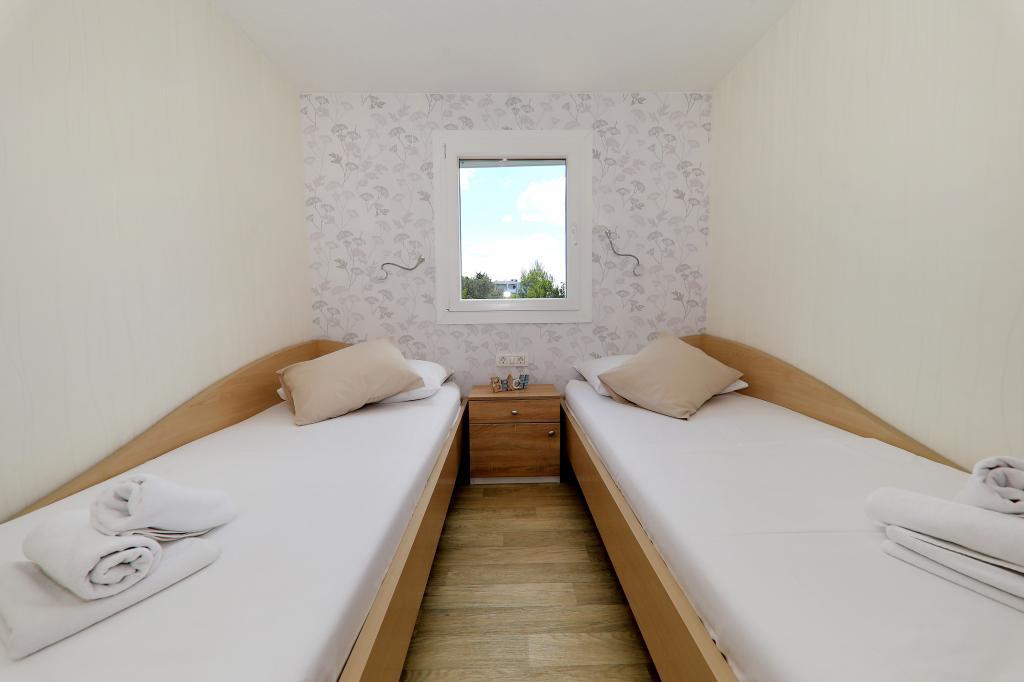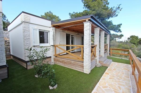 Die Mobilheime im Campingplatz Lostura befinden sich in unmittelbarer Nähe zu einem der schönsten Strände der Adria, Slanica! Das Mobilheim liegt nur 30 m vom Meer und 200 m vom Sandstrand von Slanica entfernt. Es verfügt über eine 40 m² große Terrasse mit 20 m² Balkon. Das Haus bietet zwei Schlafzimmer: eines mit einem Doppelbett (160 x 200 cm) und eines mit zwei Einzelbetten (80 x 200 cm). Im Wohnzimmer befindet sich eine Eckcouch, die als Gästebett für einen Erwachsenen oder zwei kleine Kinder genutzt werden kann. Die Küche ist komplett ausgestattet mit allen notwendigen Geräten (Kühlschrank mit Gefrierfach, Backofen, Mikrowelle, Geschirrspüler, Wasserkocher, Kaffeemaschine). Das Badezimmer ist mit Dusche, Waschmaschine, Föhn und Badaccessoires ausgestattet. Im Wohnzimmer finden Sie einen Fernseher mit Satellitenempfang, kostenloses Internet und eine Klimaanlage mit Heiz- und Kühlfunktion. Auf der Terrasse stehen ein Esstisch mit Stühlen und ein Liegestuhl zum Sonnenbaden und Genießen des herrlichen Ausblicks auf die Kornati-Inseln und den Strand von Slanica bereit. Parkplätze befinden sich in unmittelbarer Nähe des Hauses.