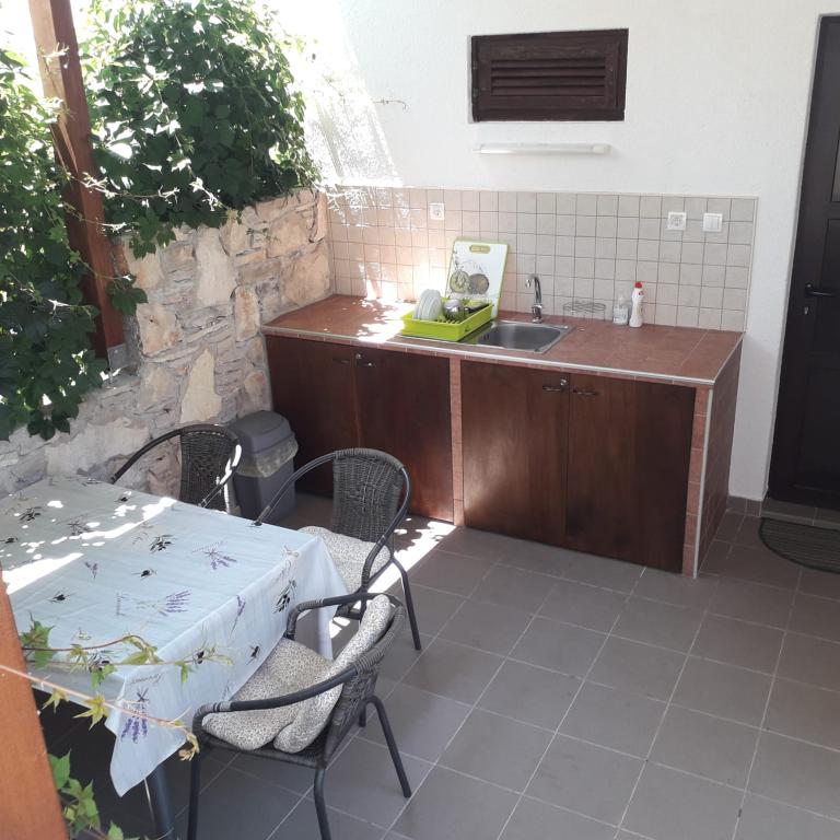 Das grüne Apartment bietet Platz für 4 bis 5 Personen und verfügt über zwei Schlafzimmer, ein Wohnzimmer, eine Küche, ein Badezimmer, eine Terrasse und einen Balkon. Auf der Terrasse und dem Balkon können Sie im Schatten im Freien speisen. Die Terrassen beider Apartments sind überdacht. Beide Apartments bieten einen privaten Parkplatz. Das blaue Apartment ist für 4 Personen und verfügt über ein Schlafzimmer, ein Wohnzimmer, eine Küche, ein Badezimmer und eine Terrasse. Es ist außerdem mit einem Geschirrspüler ausgestattet. Beide Apartments verfügen über eine Waschmaschine und einen Grill. Die Apartments sind modern, kürzlich renoviert und stilvoll eingerichtet. Die meisten Möbel sind neu und wurden speziell für jedes Apartment angefertigt. Der Strand ist 200 m entfernt und über einen kleinen Spaziergang durch einen Pinienwald erreichbar. In der Nähe befindet sich keine stark befahrene Straße. Ein Geschäft ist ca. 50 m entfernt, und ein Restaurant erreichen Sie nach 200 m. Am Strand finden Sie außerdem eine Diskothek, mehrere Cafés und eine Bäckerei. Neben Nečujam empfehlen wir auf Šolta auch einen Besuch von Stomorska, Maslinica und zahlreichen versteckten Buchten.